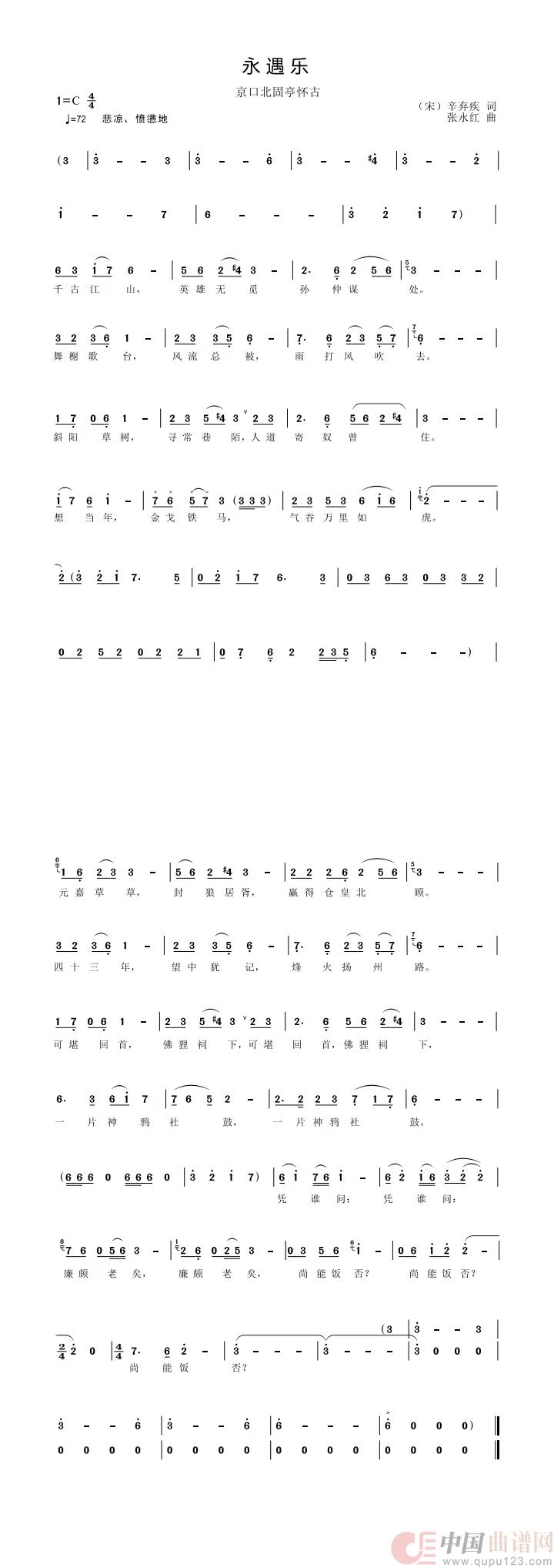 关于《永遇乐·京口北固亭怀古》曲谱的评论