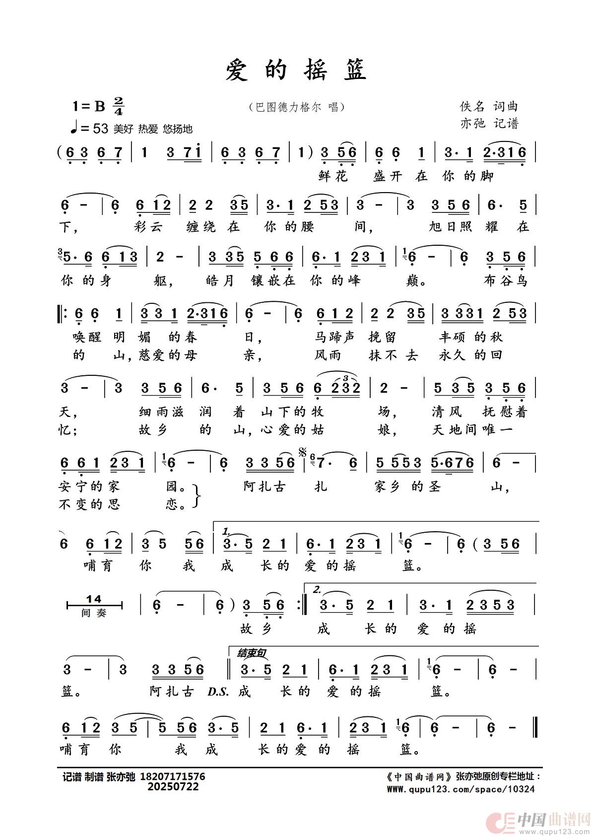 爱的摇篮(亦弛记谱)