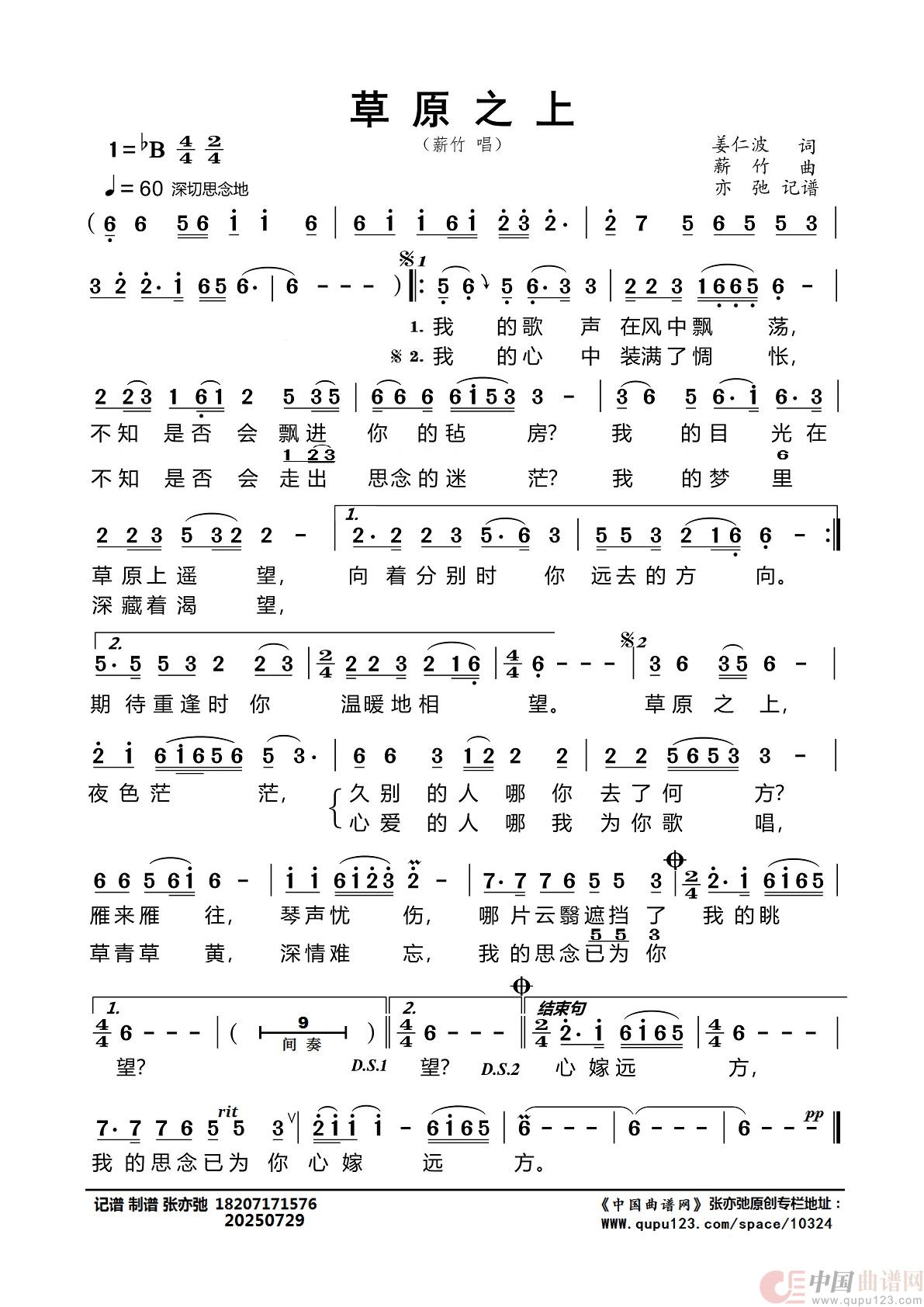 关于《草原之上(亦弛记谱)》曲谱的评论