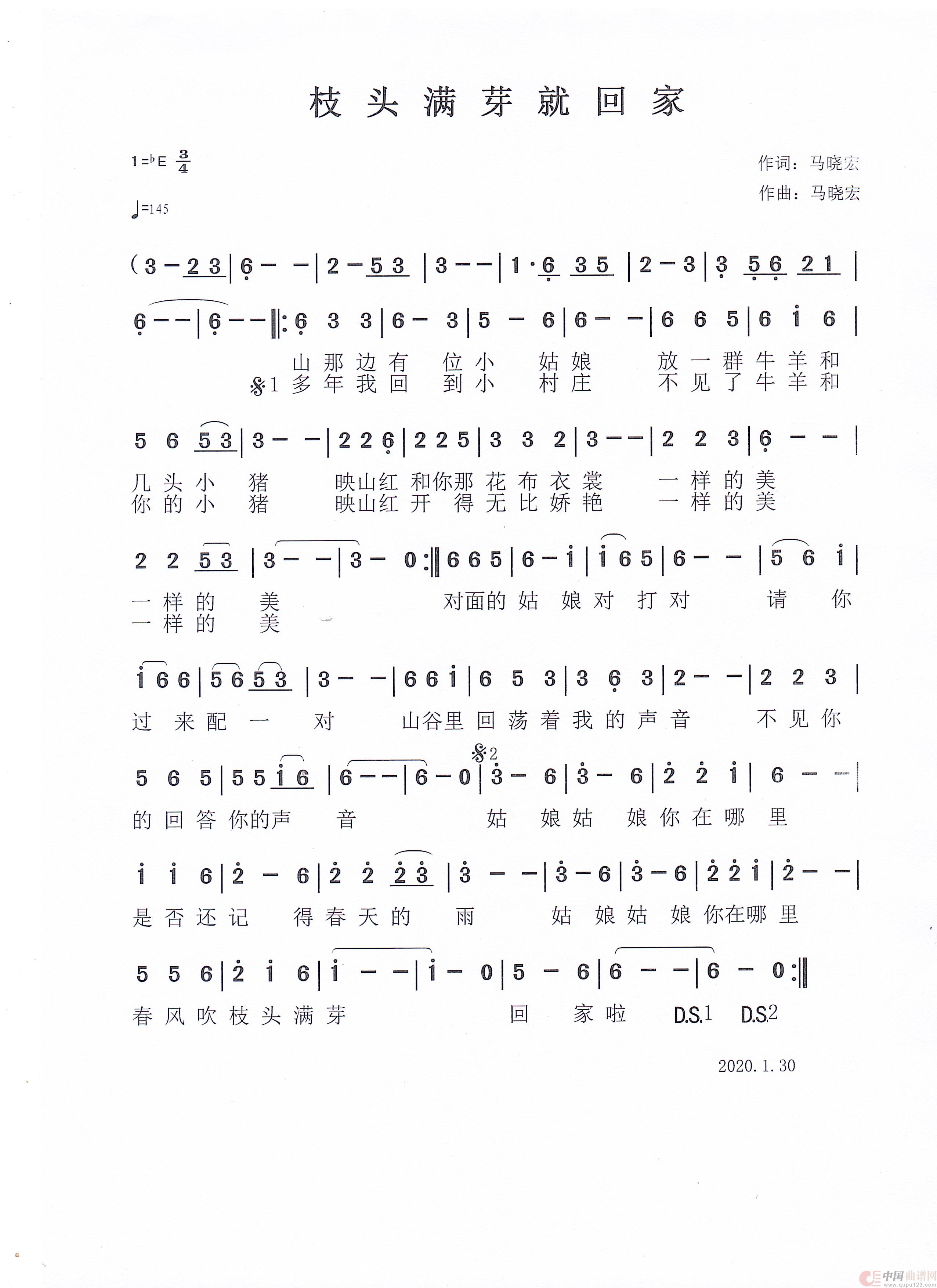 关于《枝头满芽就回家》曲谱的评论
