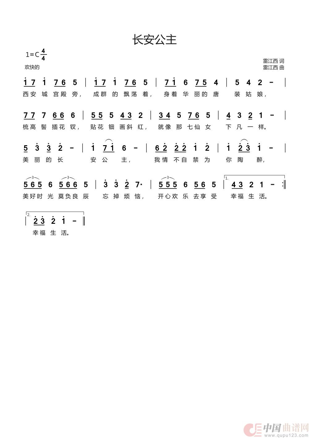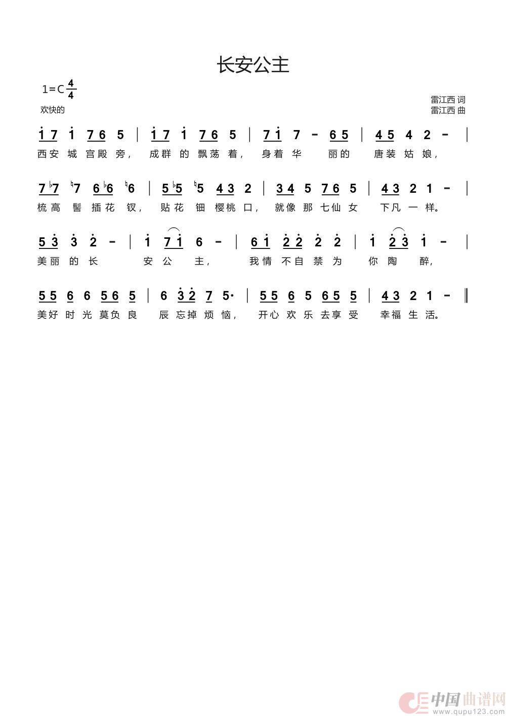 作词:雷江西 作曲:雷江西 来源:原创 上传:雷江西简谱