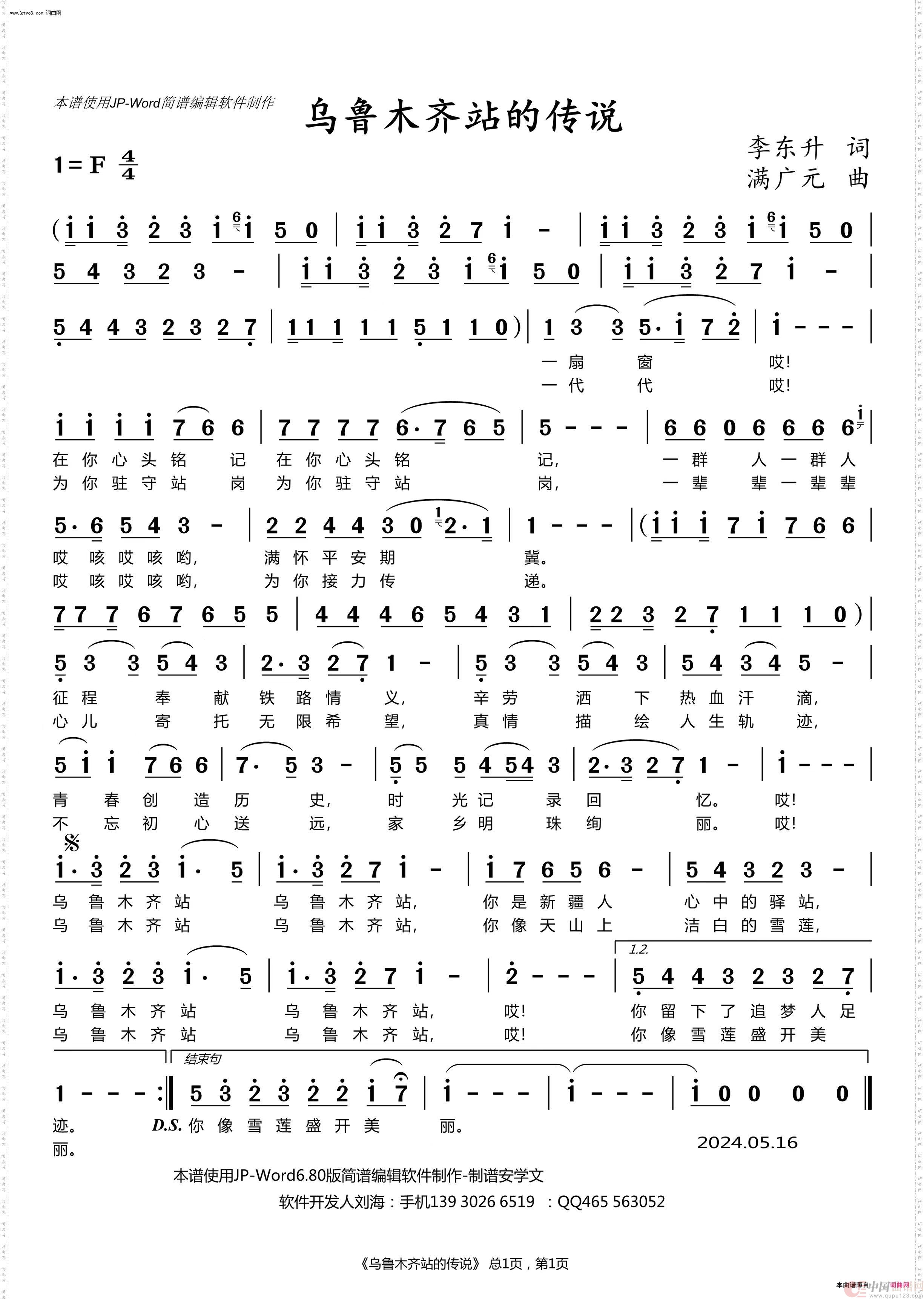 乌鲁木齐站的传说(李东升词 满广元曲)(1)_原文件名:01.jpg