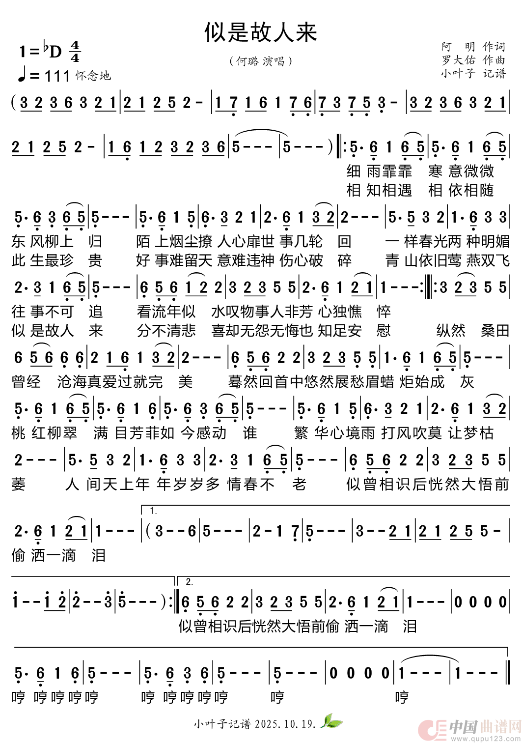 关于《似是故人来》曲谱的评论