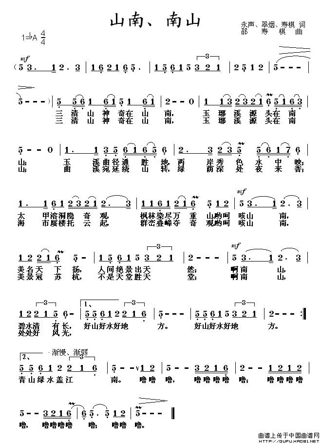 《山南、南山》文本歌词
