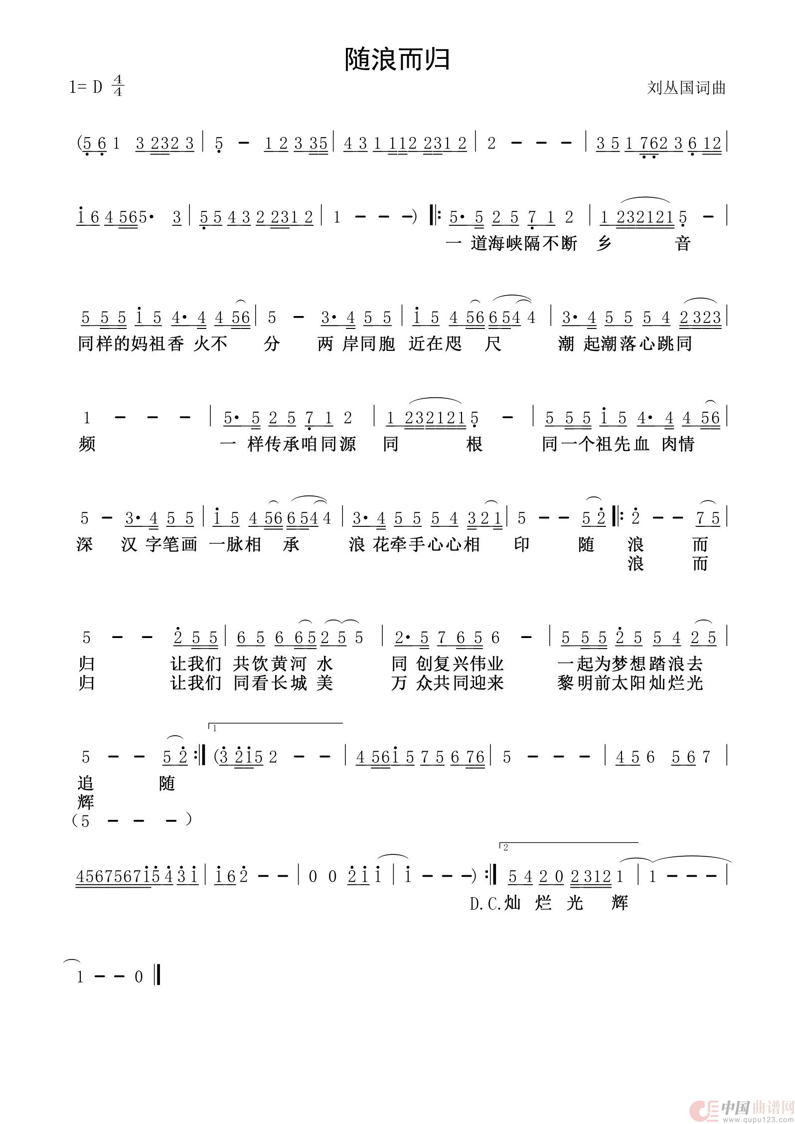 提示:在曲谱图片上单击右键,选择"图片另存为..."即可将曲谱保存到您的电脑中,打印时候可将图片插入到WORD中,调整合适大小打印即可。