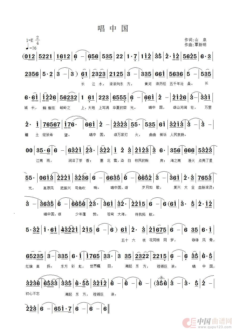 关于《唱中国》曲谱的评论