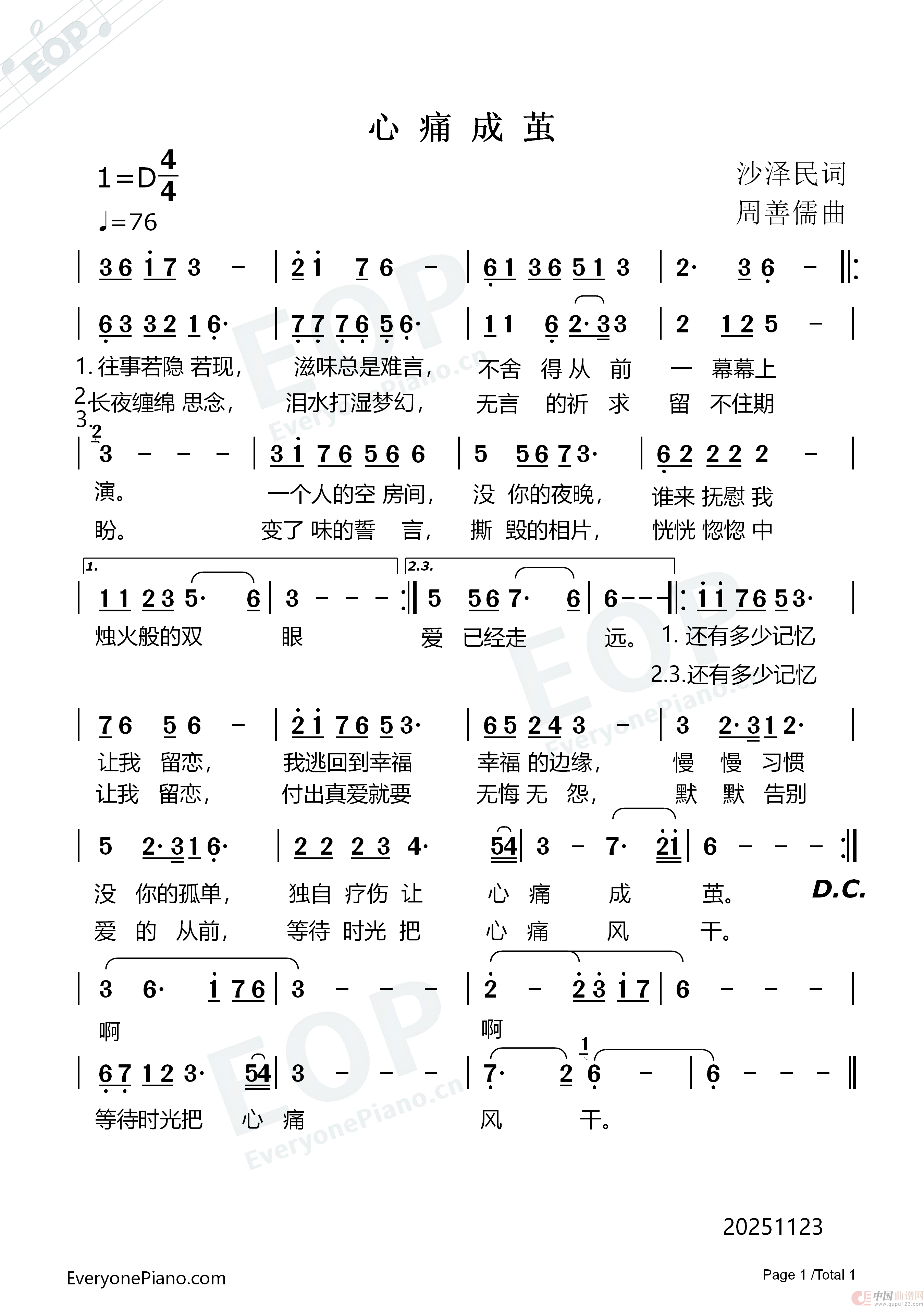 关于《心痛成茧》曲谱的评论