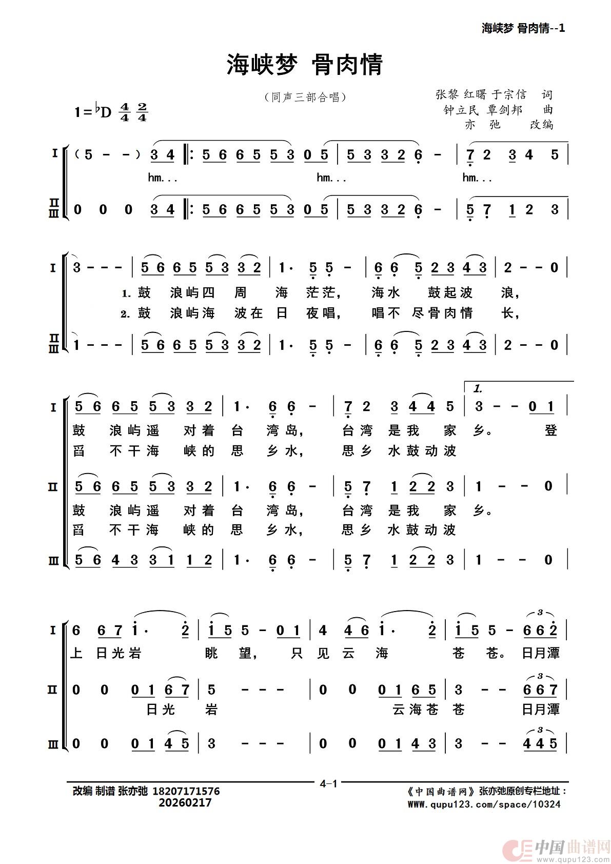 海峡梦 骨肉情(亦弛改编)(同声三部合唱)