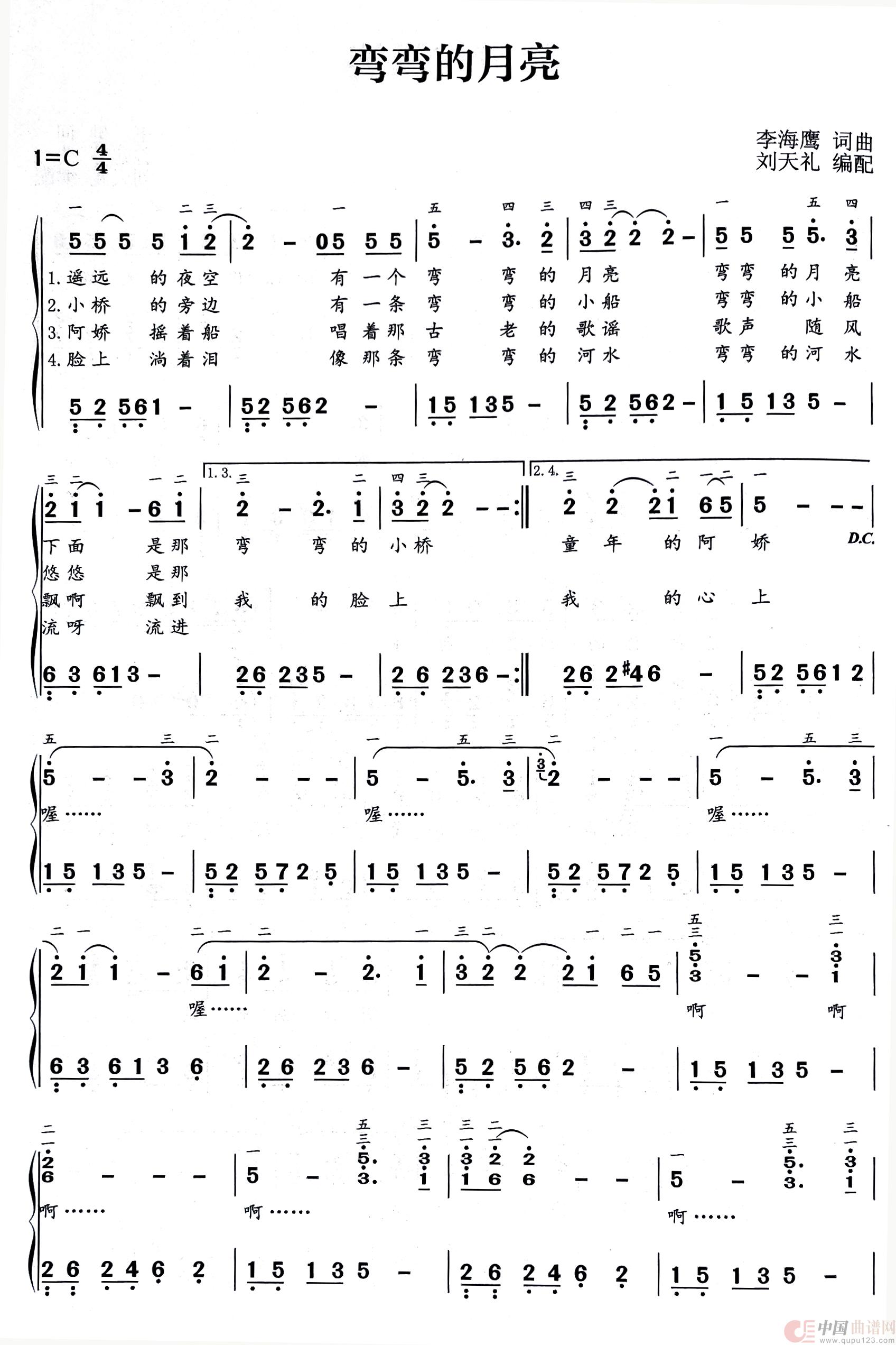 关于《弯弯的月亮》曲谱的评论