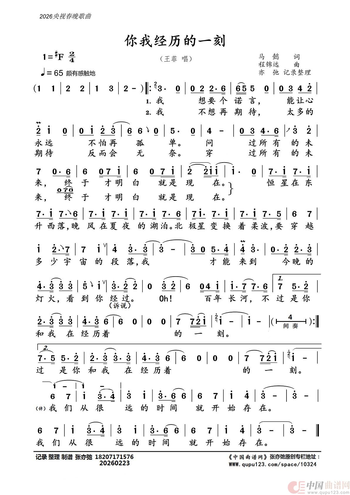 关于《你我经历的一刻(亦弛整理)》曲谱的评论