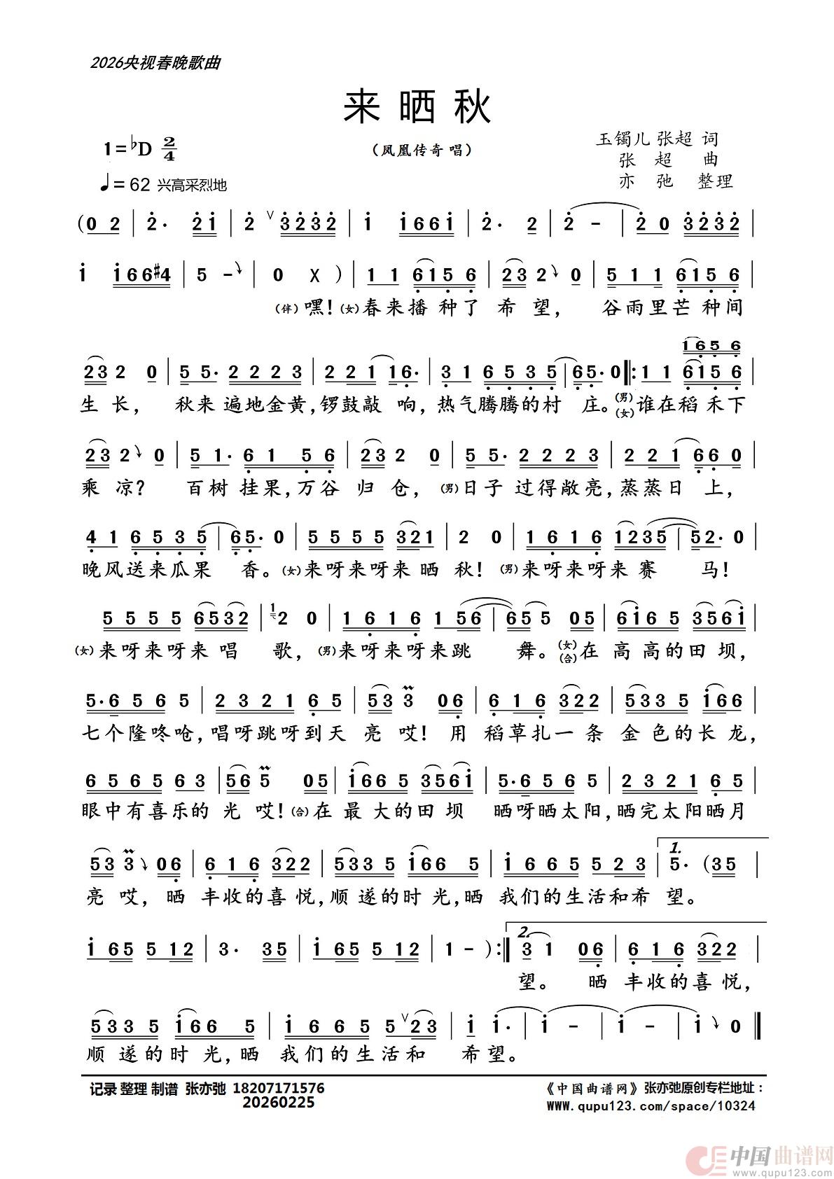 关于《来晒秋(亦弛整理)》曲谱的评论