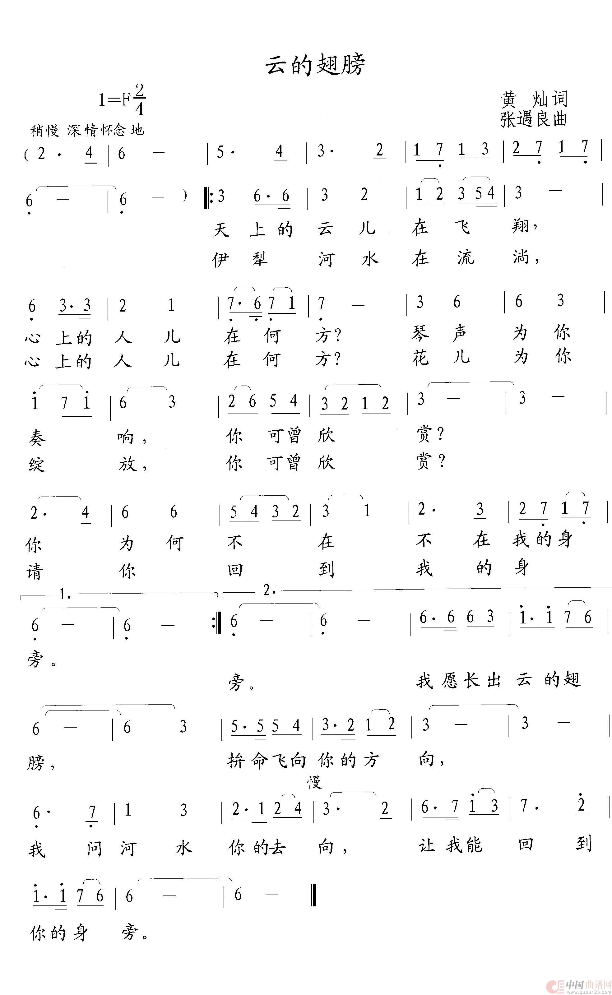 关于《云的翅膀》曲谱的评论