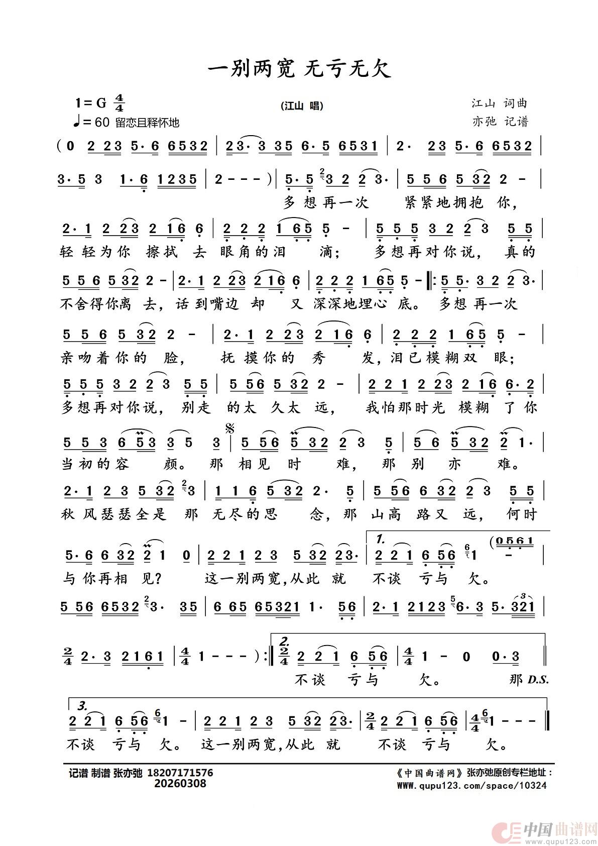 一别两宽 无亏无欠(亦弛记谱)