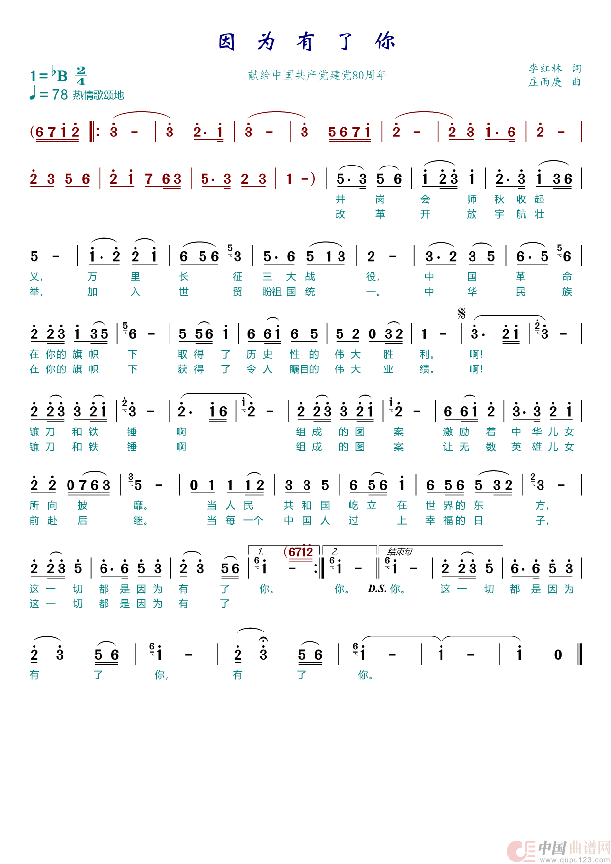 因为有了你(1)_原文件名:23. bB调 因为有了你 庄雨庚作品.png