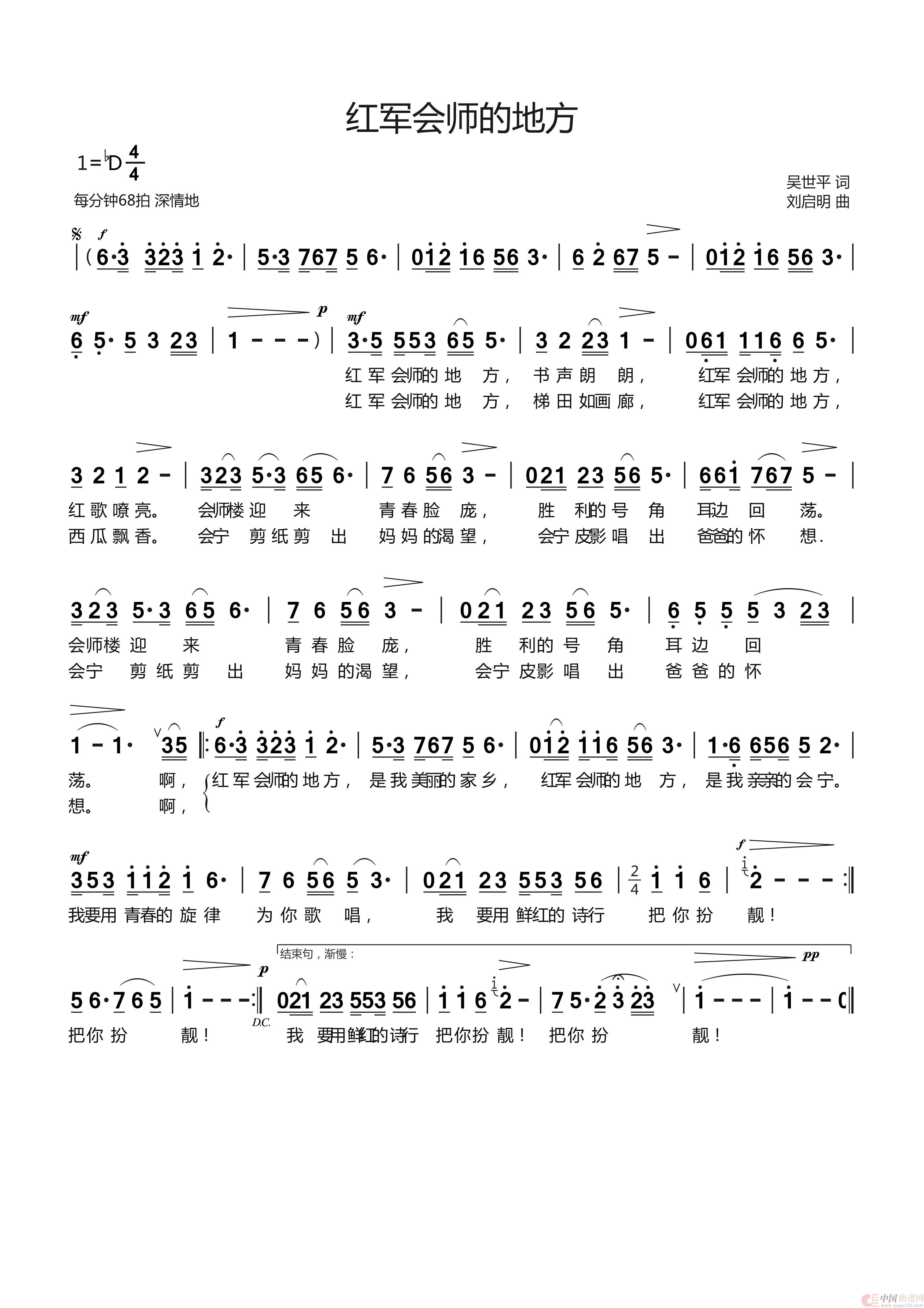 关于《红军会师的地方 吴世平词 刘启明曲 李萍演唱》曲谱的评论