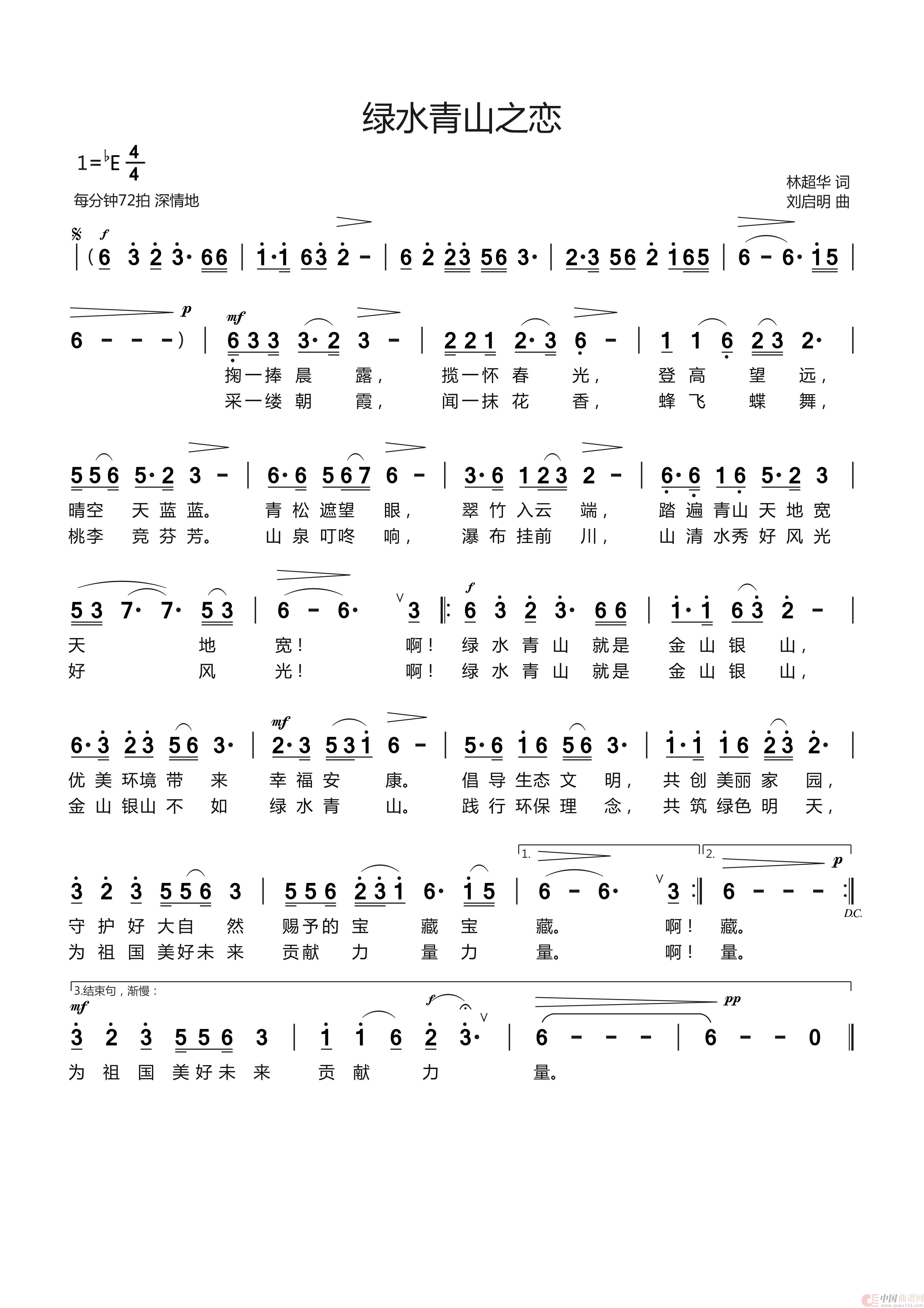 关于《绿水青山之恋 林超华词 刘启明曲 许志刚唱》曲谱的评论