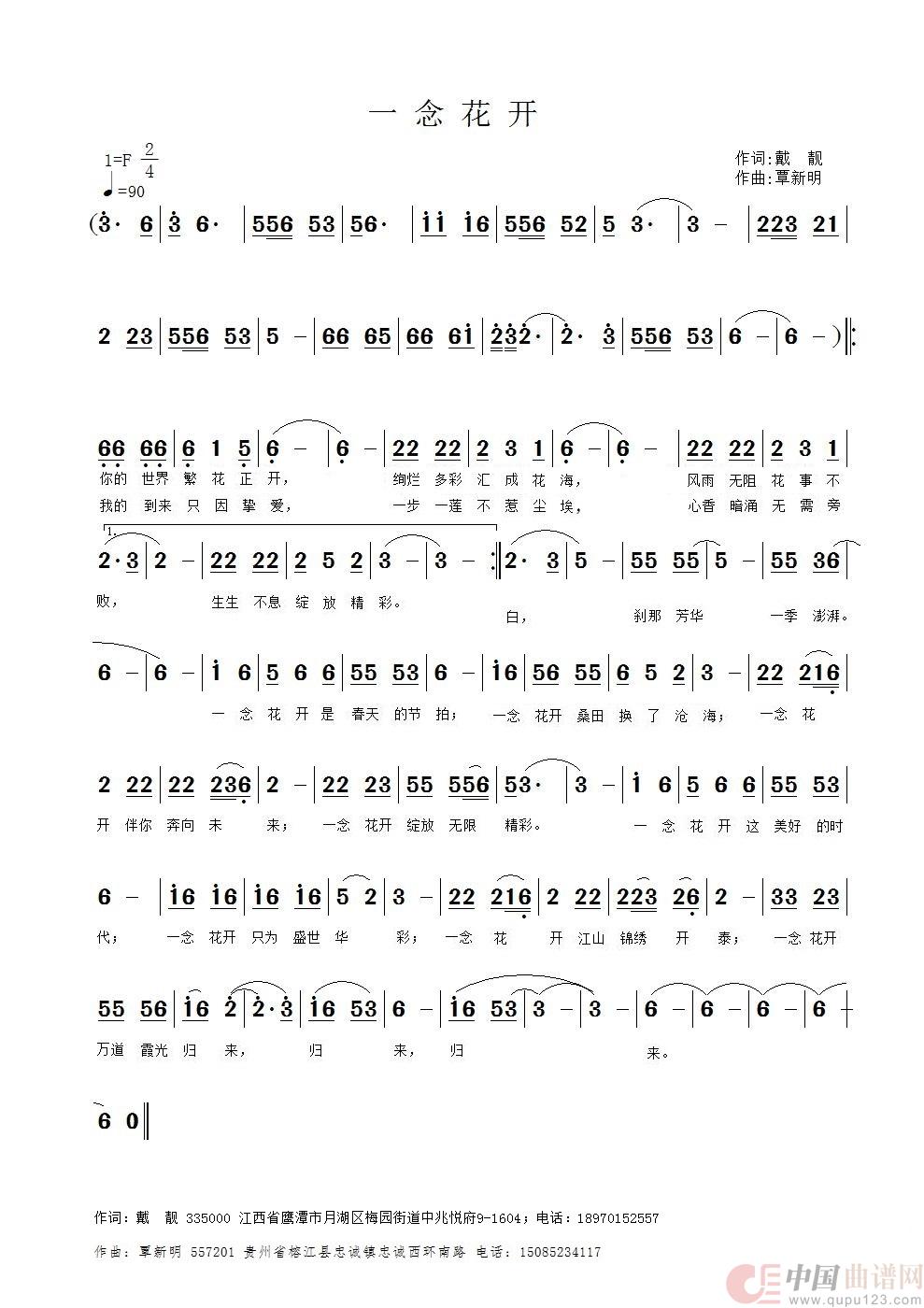 关于《一念花开》曲谱的评论