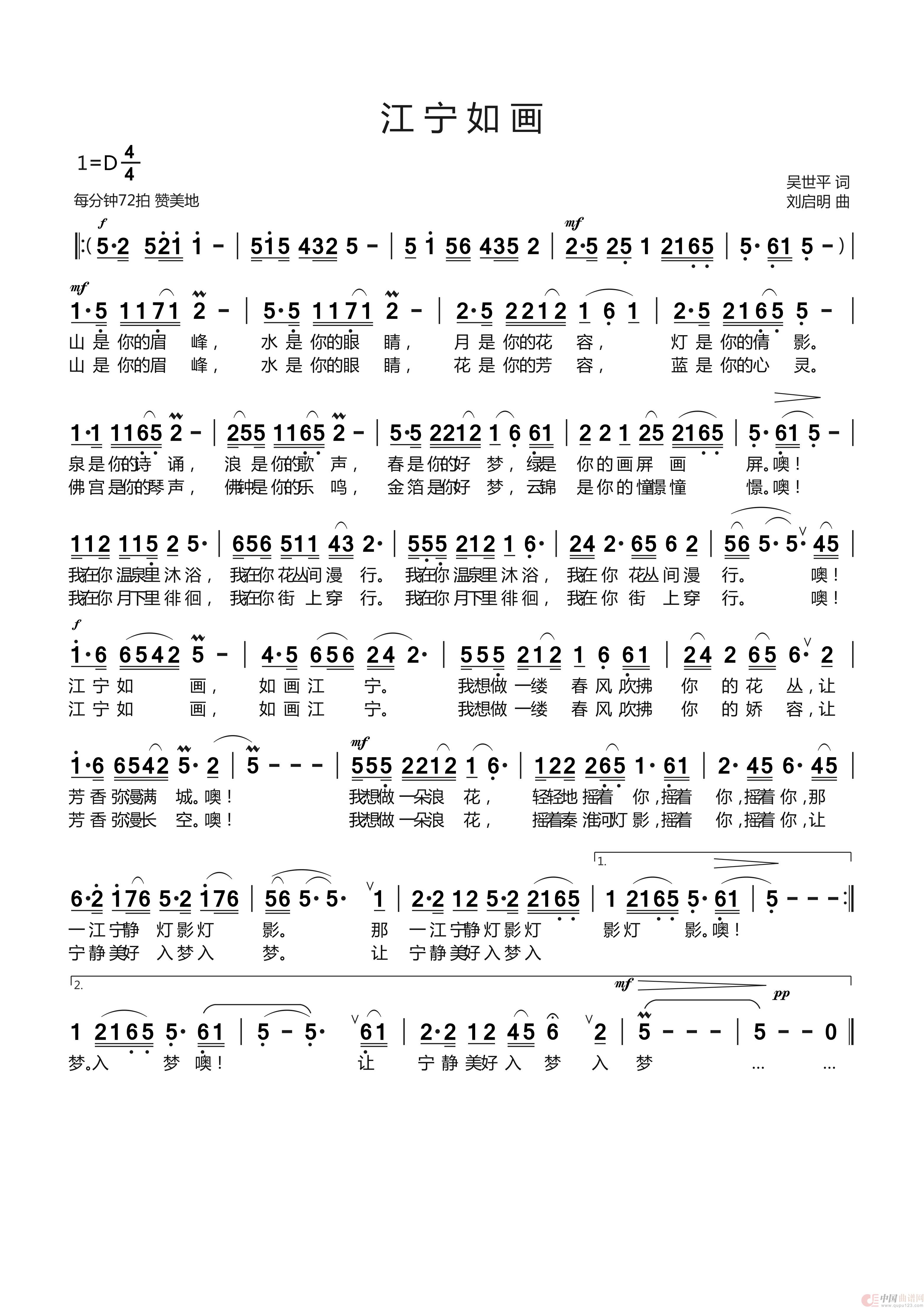 关于《《江 宁 如 画》 吴世平词 刘启明曲 李萍演唱》曲谱的评论