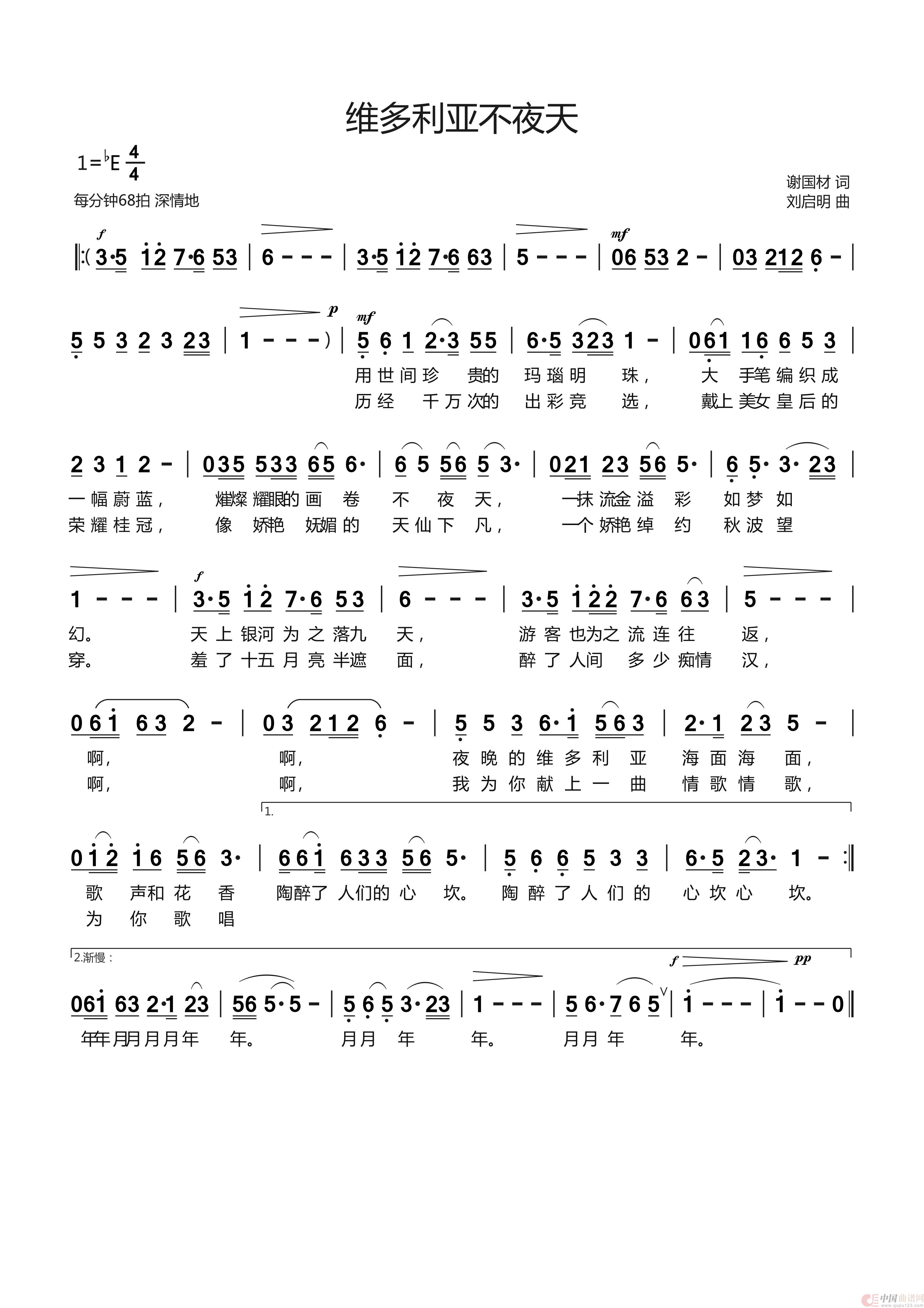 关于《《维多利亚不夜天》谢国材词 刘启明曲》曲谱的评论