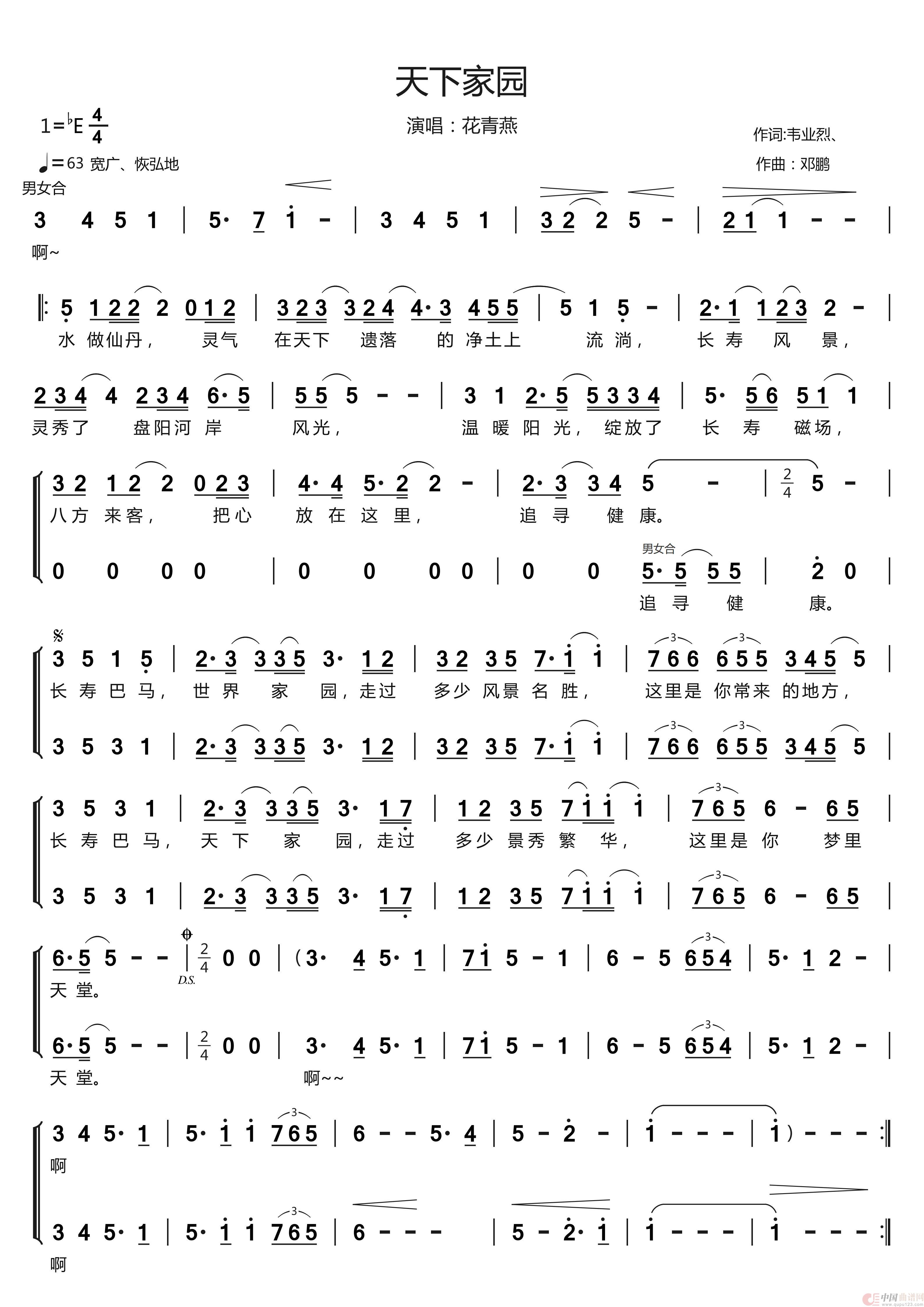 关于《天下家园》曲谱的评论