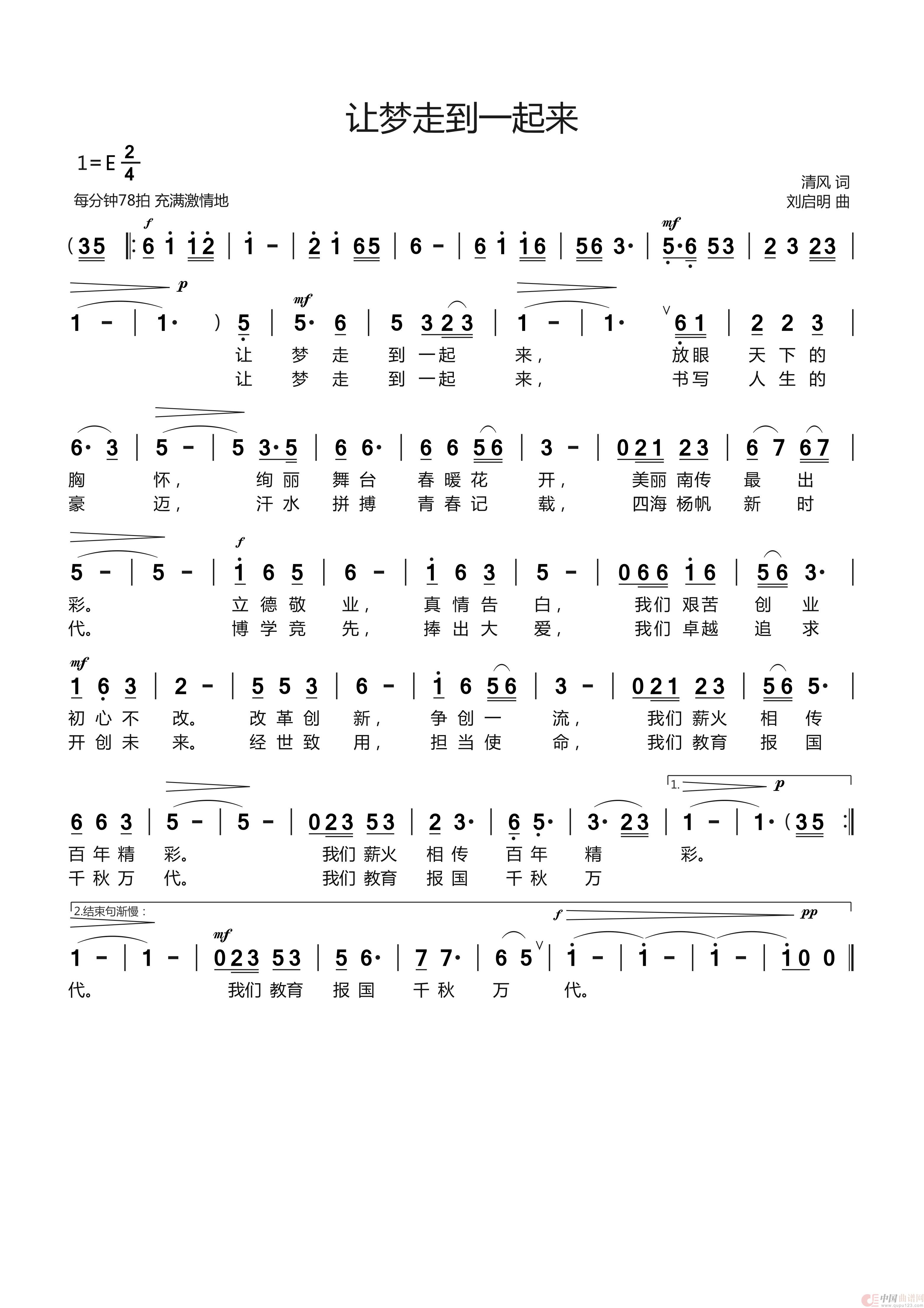 关于《《让梦走到一起来》【清风词 刘启明曲 许志刚演唱】》曲谱的评论