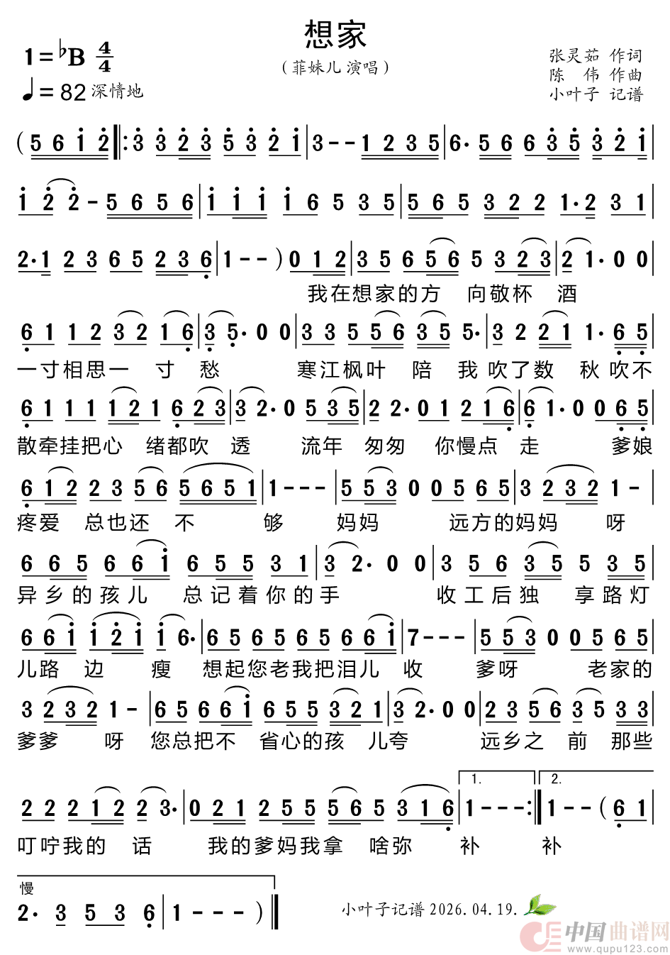 关于《想家》曲谱的评论