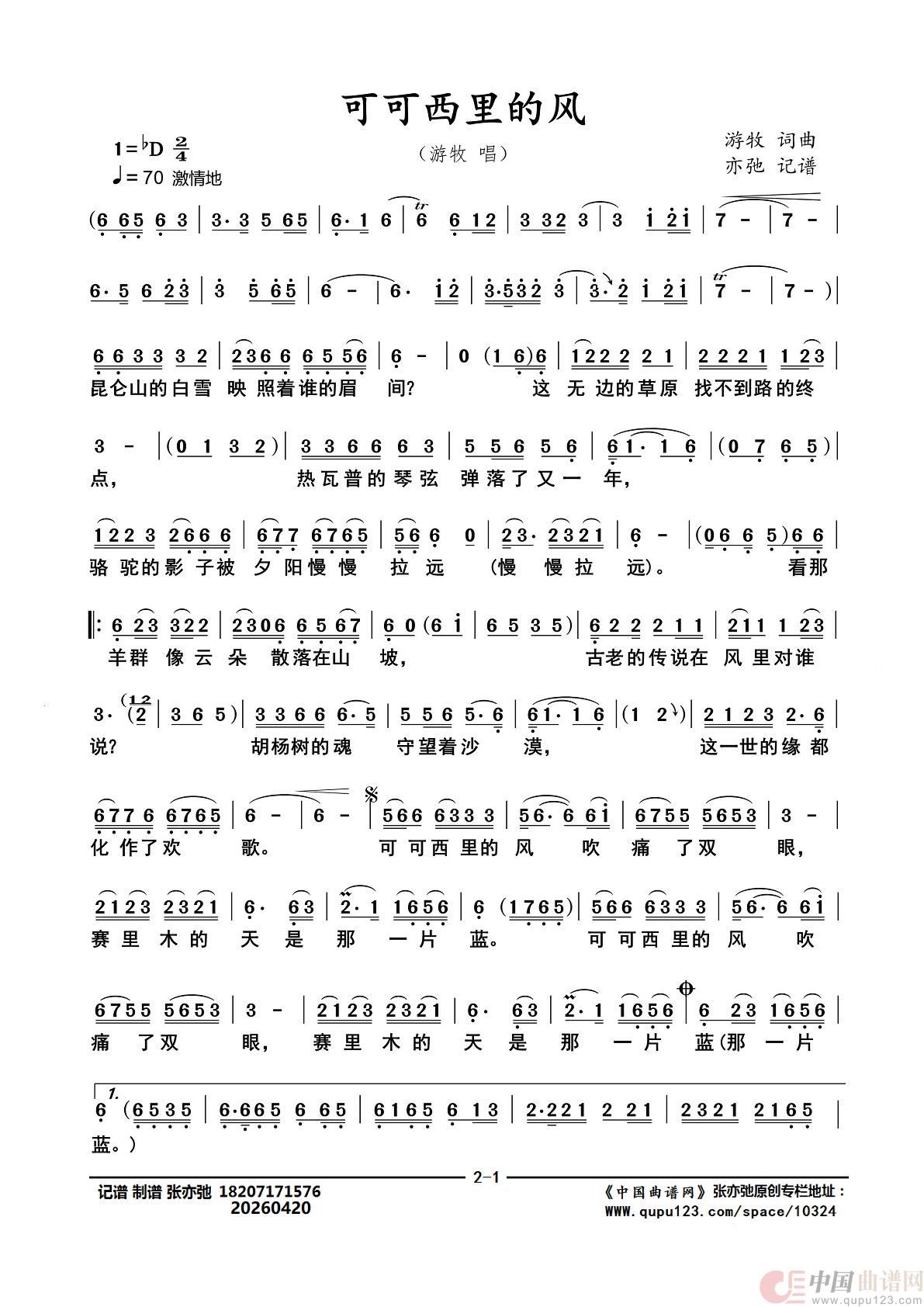 作词:游牧 作曲:游牧 演唱(奏):游牧 来源:张亦弛 记谱 制谱 上传:咪迷米张亦弛