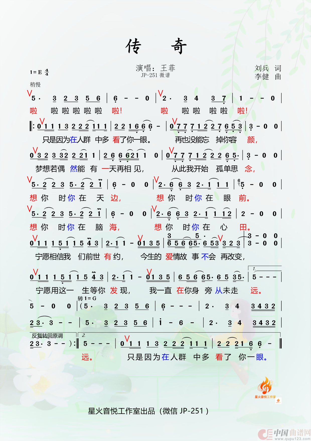 作词:刘兵   作曲:李健   演唱(奏):王菲   来源:扒谱   上传:扣3883443810   日期:2026-04-22   浏览次数: