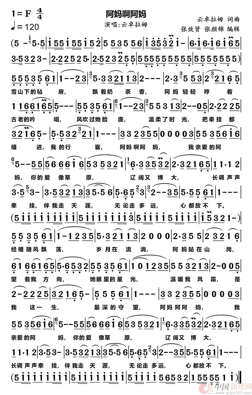 作词:云卓拉姆 作曲:云卓拉姆 演唱(奏):云卓拉姆 来源:简谱网 上传:小花儿357
