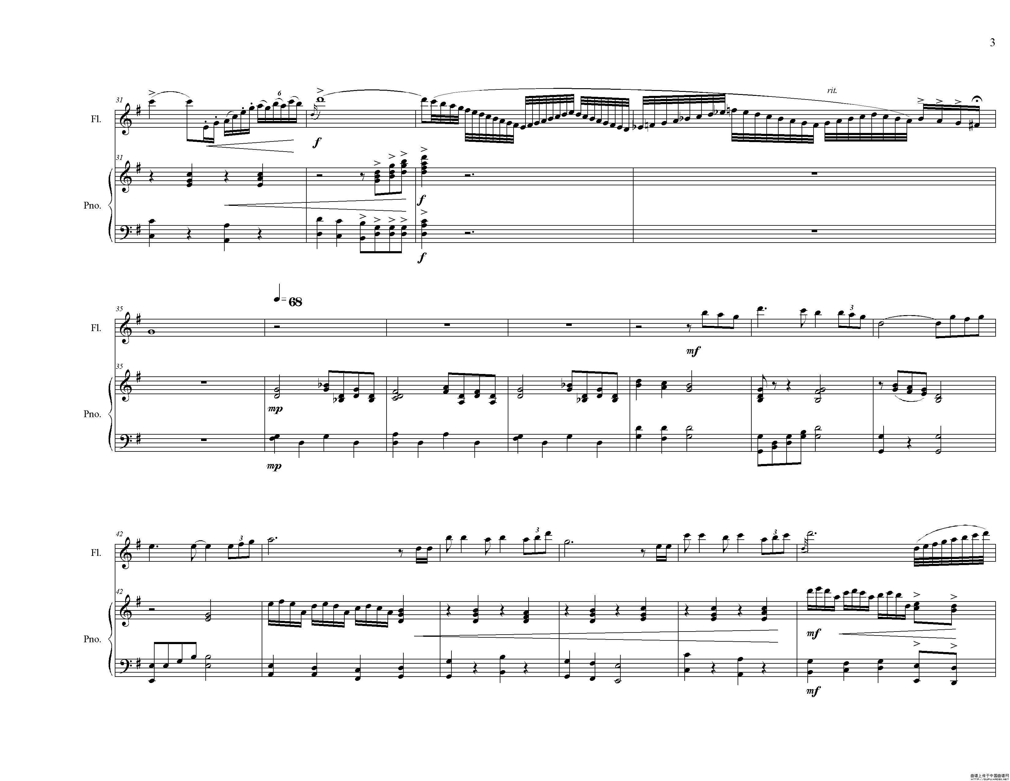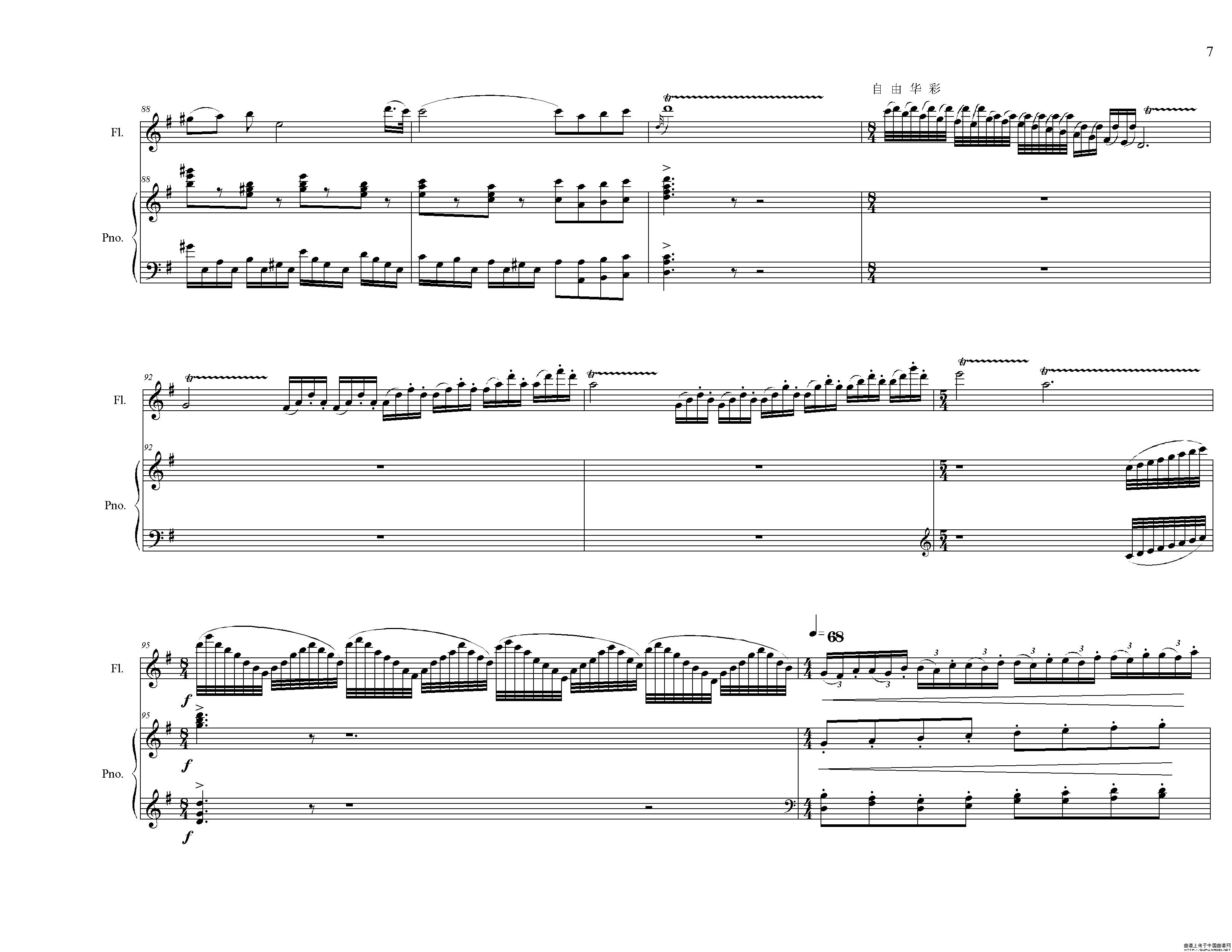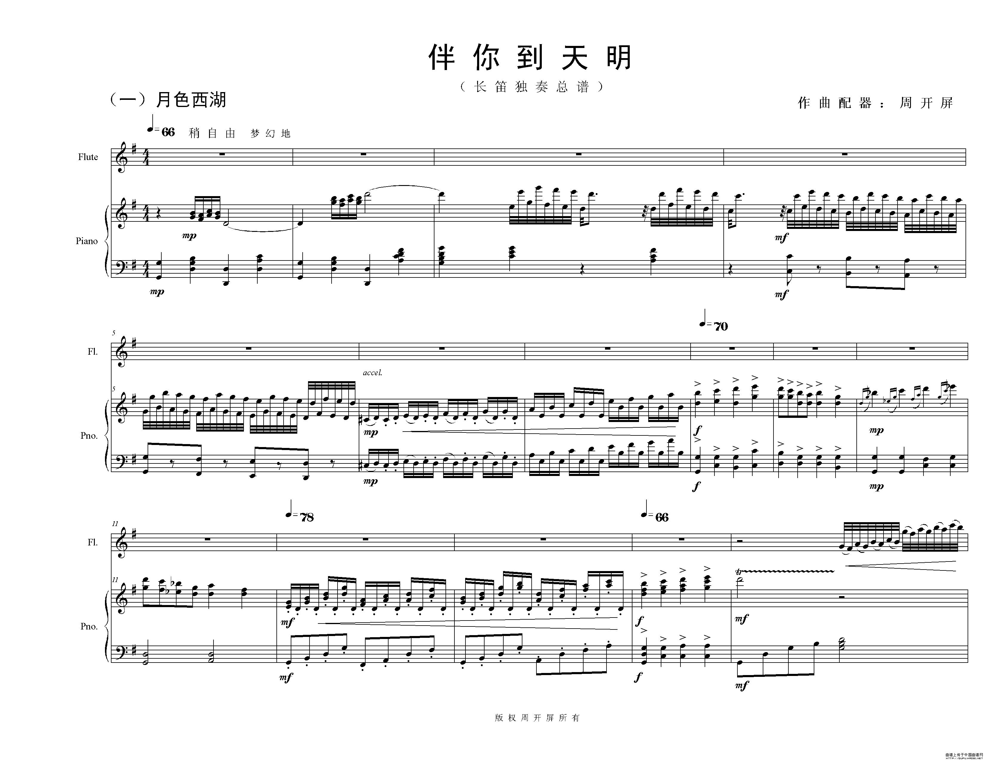 长笛独奏曲《伴你到天明》总谱(周开屏原创)