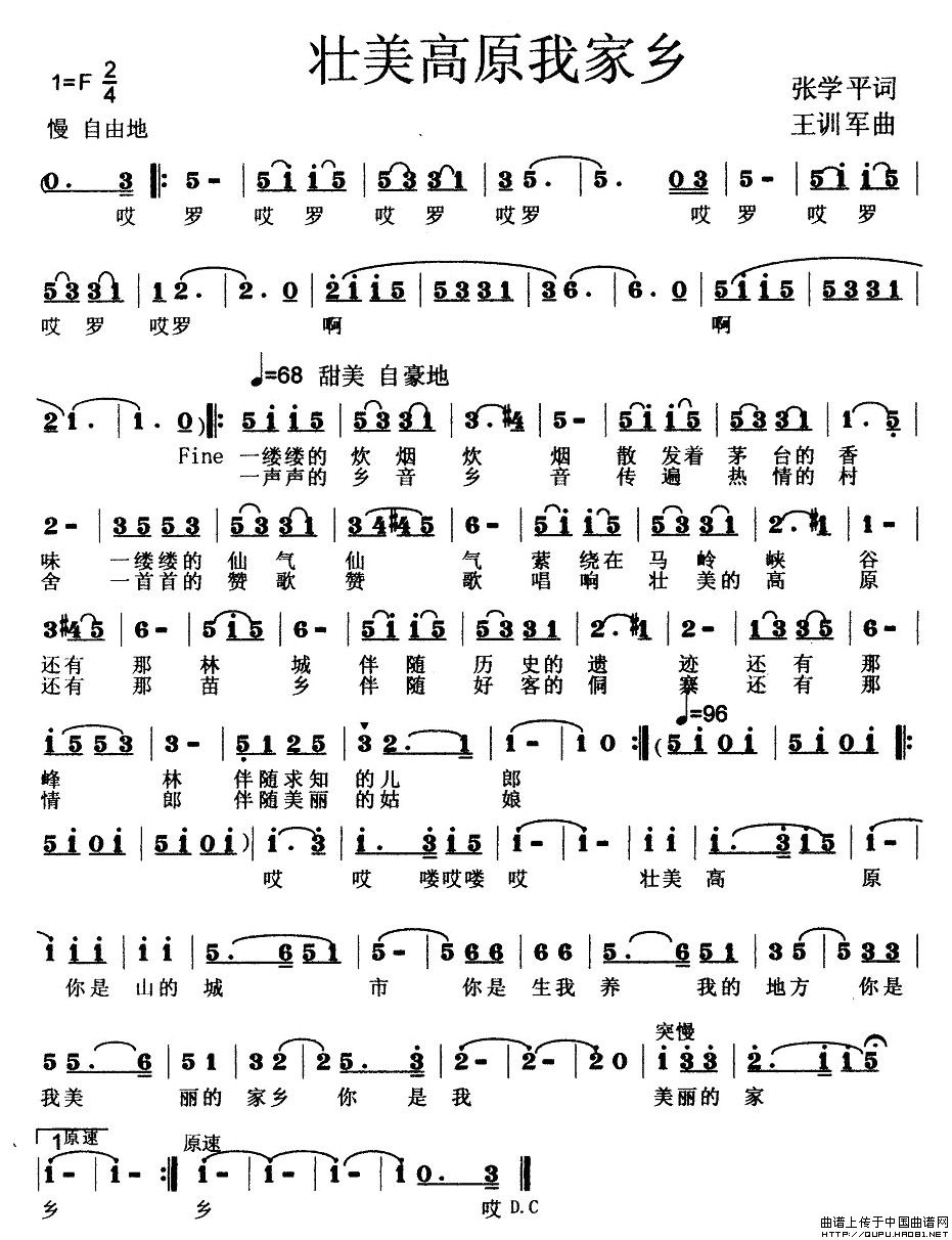 关于《壮美高原我家乡》曲谱的评论