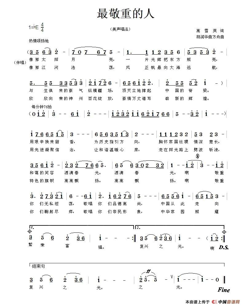 敬重你们无私坦荡,歌唱你们品德高尚,中国从此走向繁荣富强。
