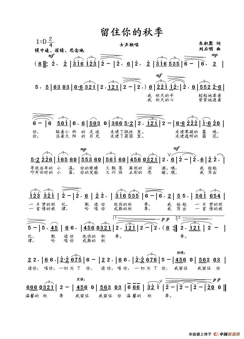 沈阳音乐学院教授、著名作曲家刘聪先生在我新浪博客所发歌曲“留住你的秋季”写下如下评论:“如果再有高质量钢琴伴奏,就是一首可以获得永恒的艺术歌曲。”