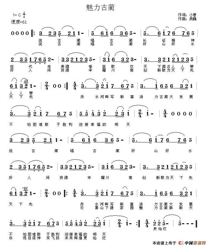 关于《魅力古蔺》曲谱的评论