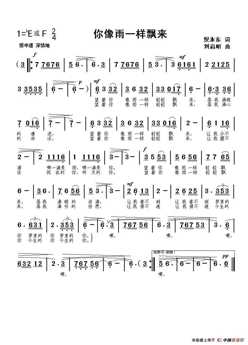 你像雨一样飘来(倪永东词 刘启明曲)(1)_原文件名:你像雨一样飘来jpeg.JPG