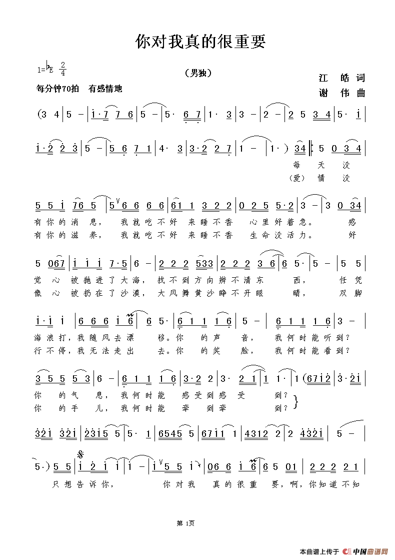 关于《你对我真的很重要》曲谱的评论