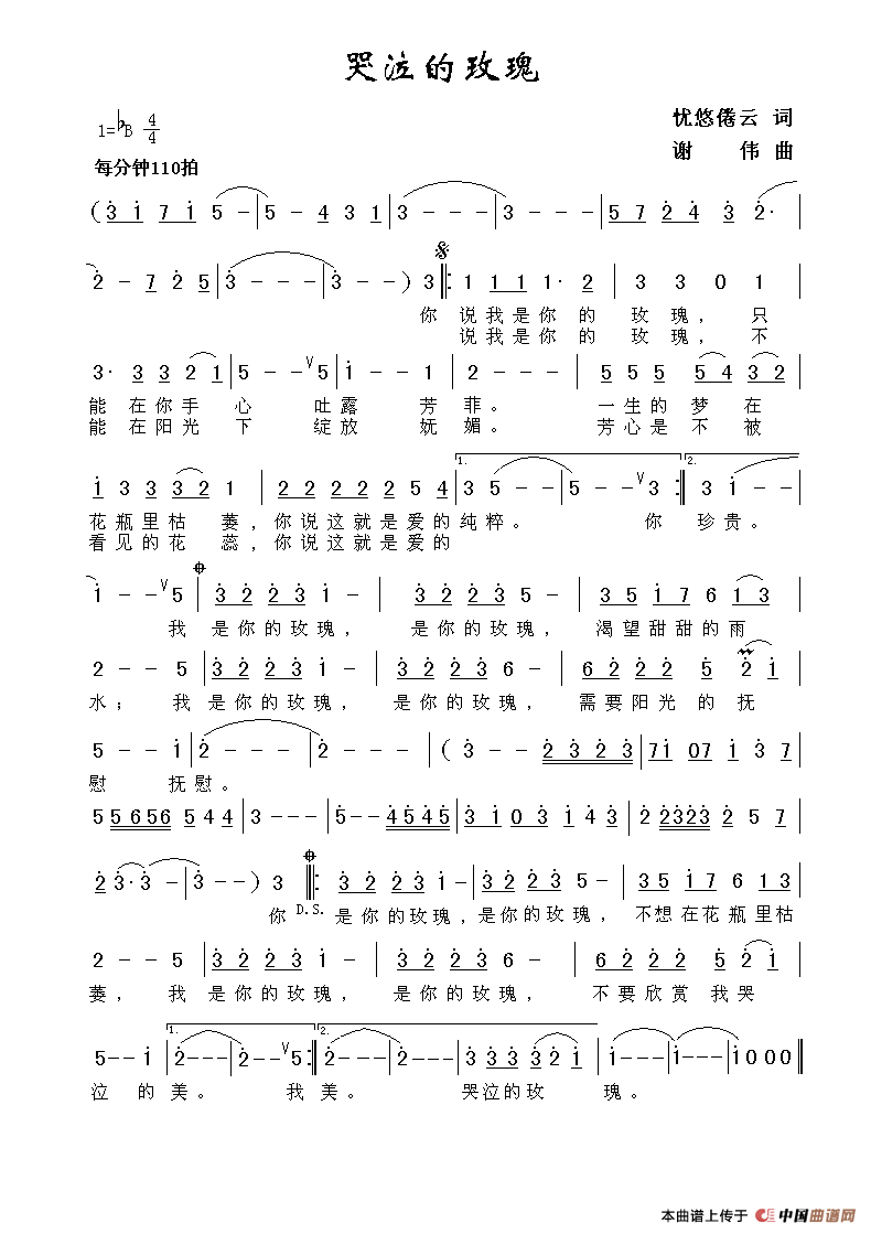 作词:忧悠倦云   作曲:谢伟   演唱(奏):国巍   格式:简谱   来源:谱友谢伟上传   上传:谢伟   日期:2012-11-03   浏览次数: