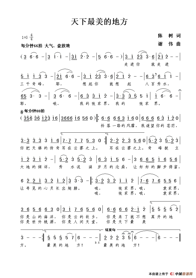 作词:陈树   作曲:谢伟   演唱(奏):枫桥   格式:简谱   来源:谱友谢伟上传   上传:谢伟   日期:2012-11-04   浏览次数: