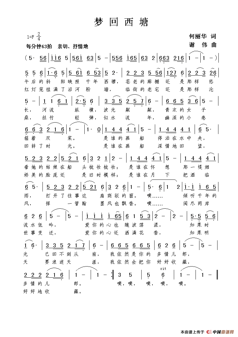 (荷花词 谢伟曲 罗焱坤编曲 都市苍狼演唱) 午后的斜阳映照千年西塘, 苍老的廊棚还是那样悠长, 河流纵横,波光粼粼, 青衣的女子摇着双浆。 是谁的画船停泊在水中央, 看她的姑娘在船头梳妆; 是谁在怀想那一堤烟雨, 打开了往事这扇斑驳的窗。 噢, 倾听千年的流水低吟, 爱你的心也随波荡漾, 如果时光己回不到从前, 我依然是你的多情儿郎。 红灯笼挂满了沿河粉墙, 临街的老宅还是那样沧桑, 丝竹轻弹,似水流年, 幽深的小巷回转了时光。 是谁在画船深情回望, 娇美的脸庞还是旧时模样, 是谁在月下把酒临风, 挥一管翰墨风也飘香。 噢,阅尽两岸世事变迁, 爱你的心还洒满花香, 如果明天要浪迹天涯, 我依然会把你好好收藏。 |