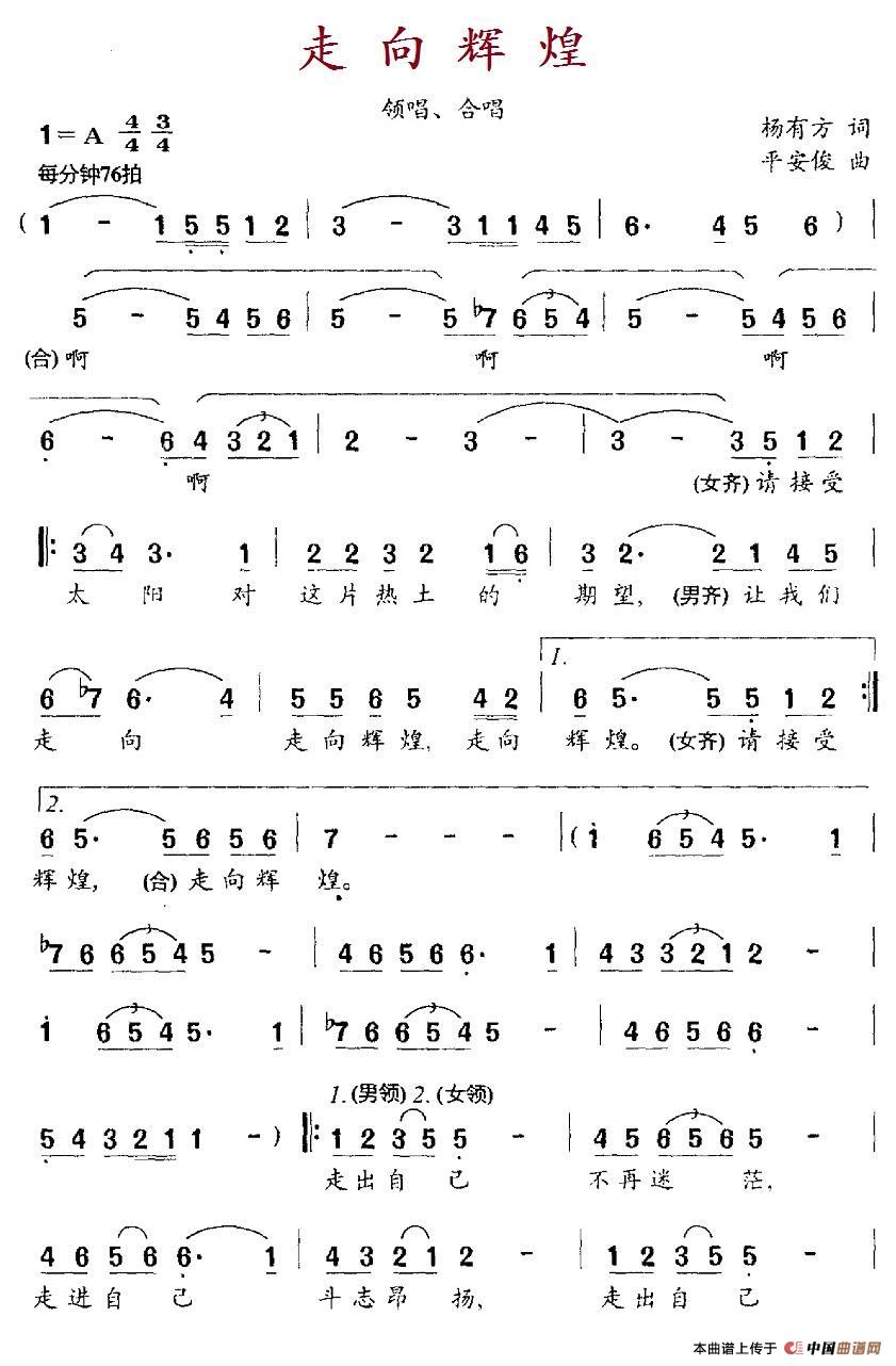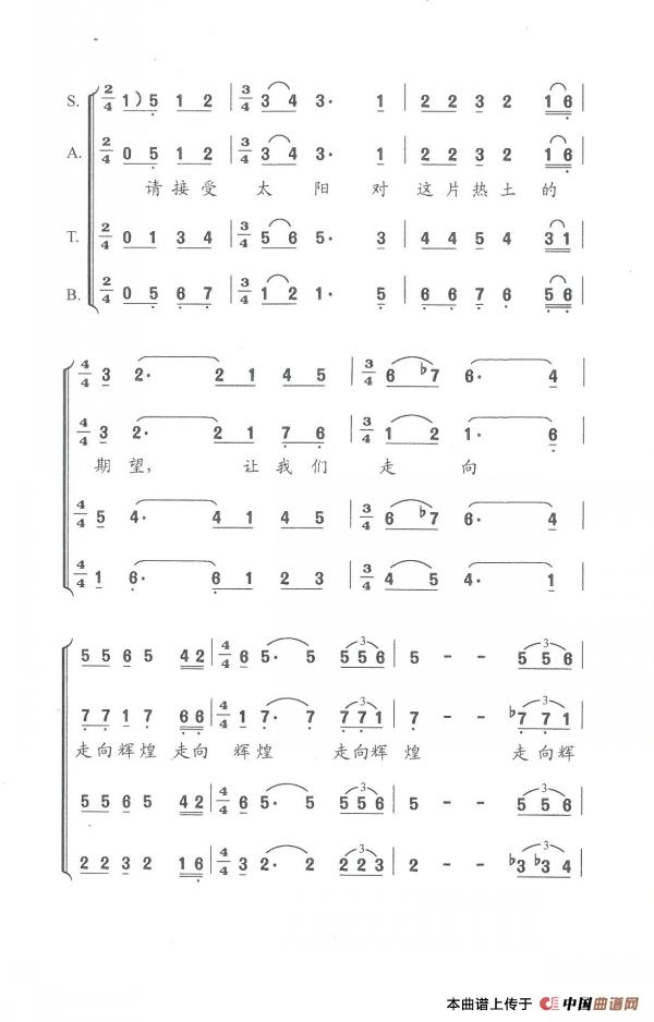 “请接受太阳对这片热土的期望,让我们走向,走向辉煌,走向辉煌。”