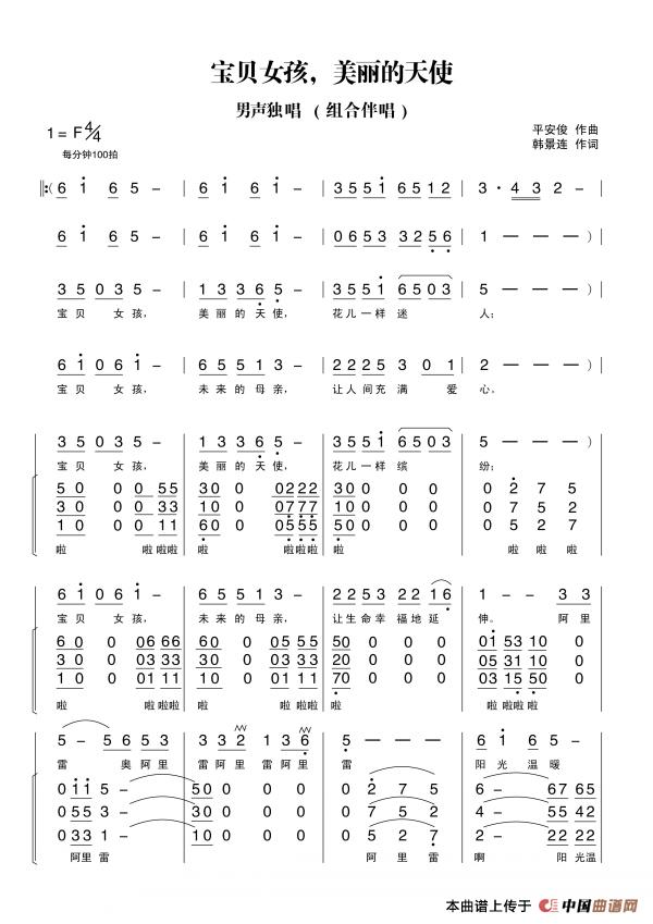 关于《宝贝女孩,美丽的天使》曲谱的评论