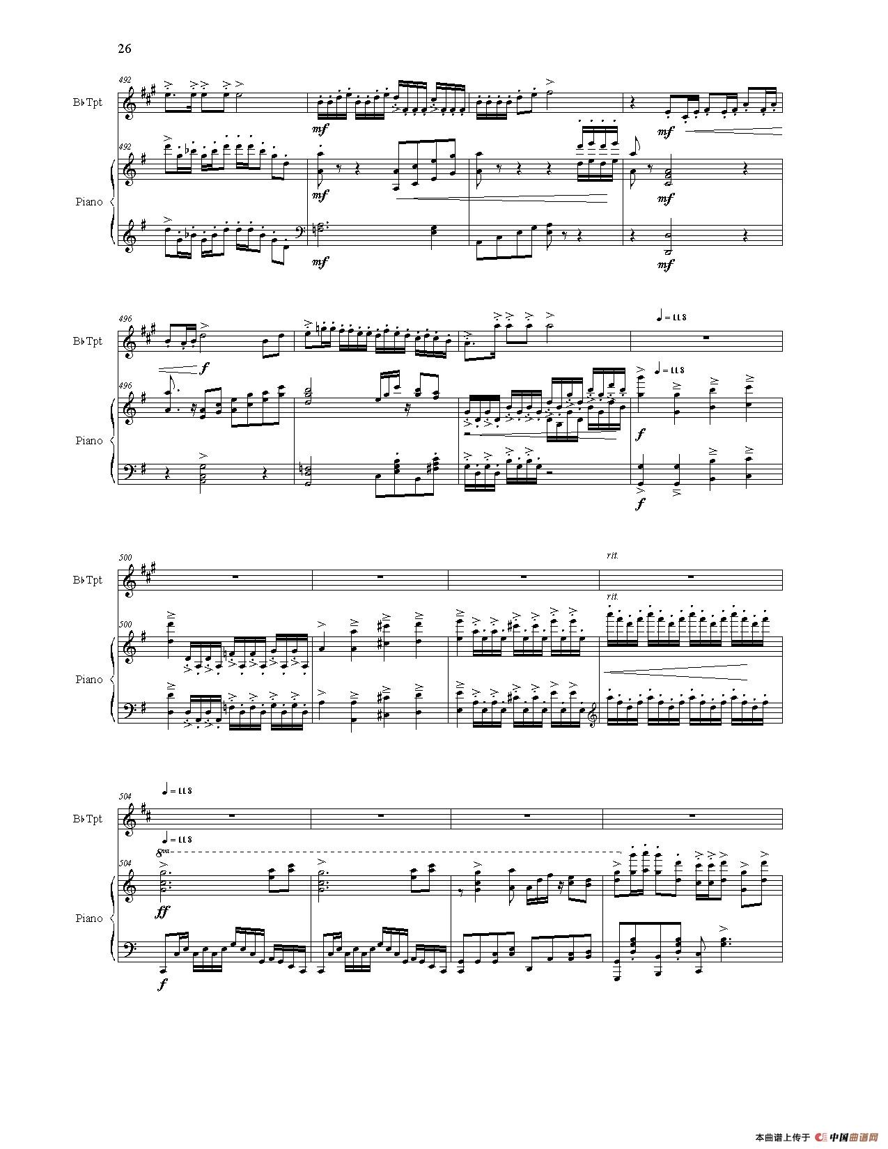 说明:这里发布的是小号小协奏曲《祖国,我属于你》作品的小号独奏与钢琴伴奏谱。