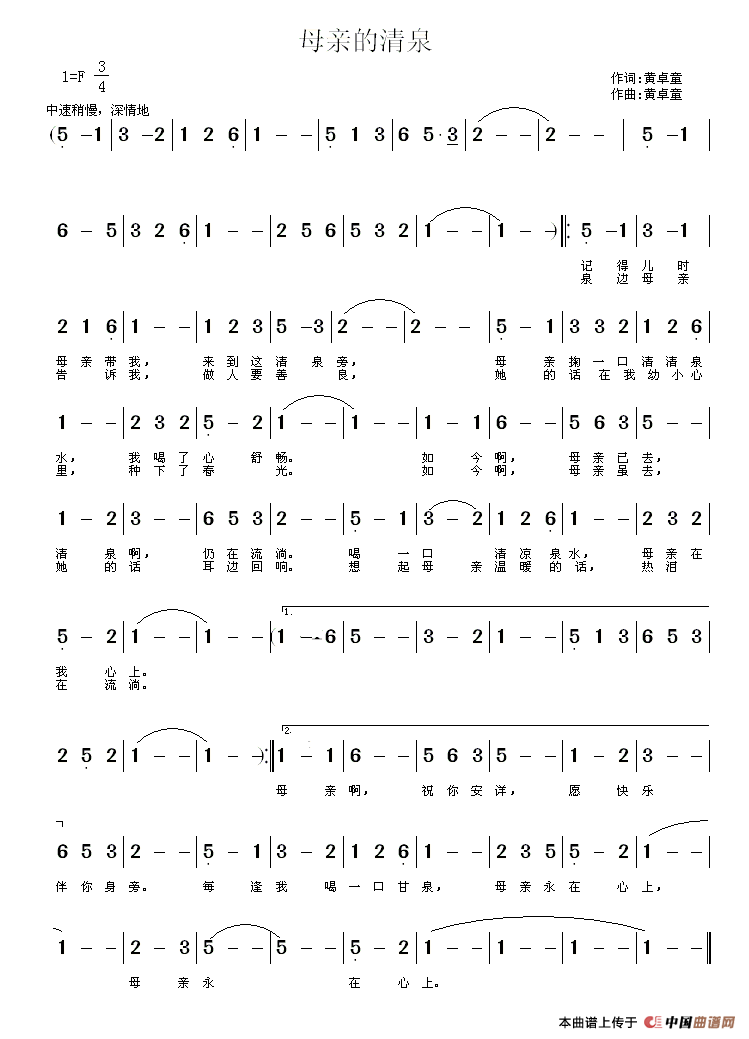 关于《母亲的清泉》曲谱的评论
