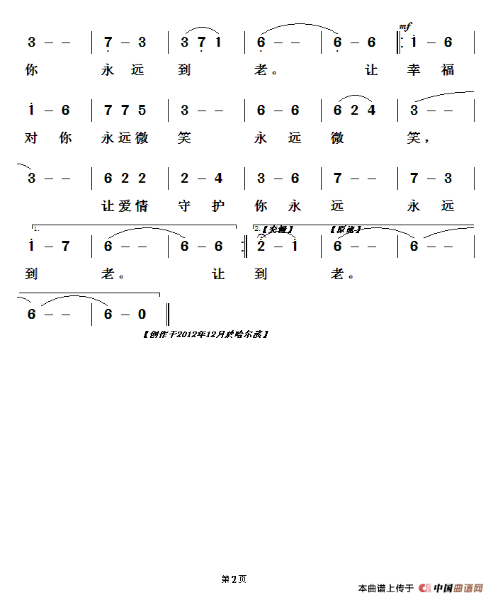提示:在曲谱图片上单击右键,选择"图片另存为..."即可将曲谱保存到您的电脑中,打印时候可将图片插入到WORD中,调整合适大小打印即可。