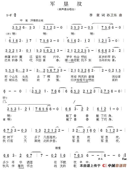 关于《军垦坟(李奎孙卫东曲)》曲谱的评论