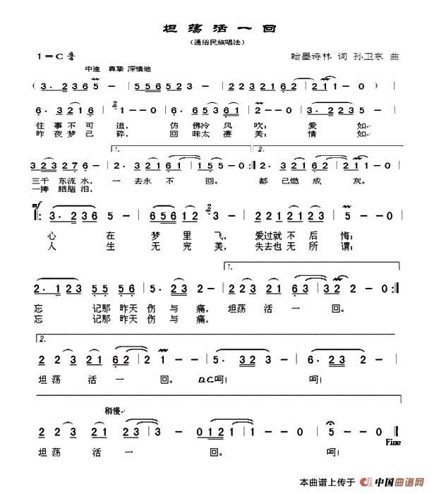 关于《坦荡活一回(翰墨诗林词孙卫东曲)》曲谱的评论