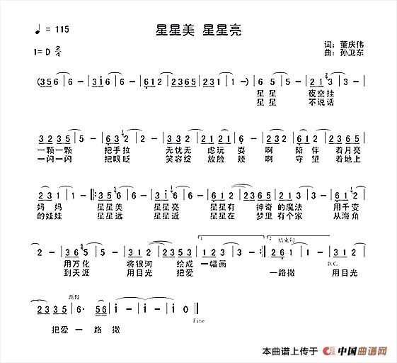 关于《星星美 星星亮(董庆伟词孙卫东曲)》曲谱的评论