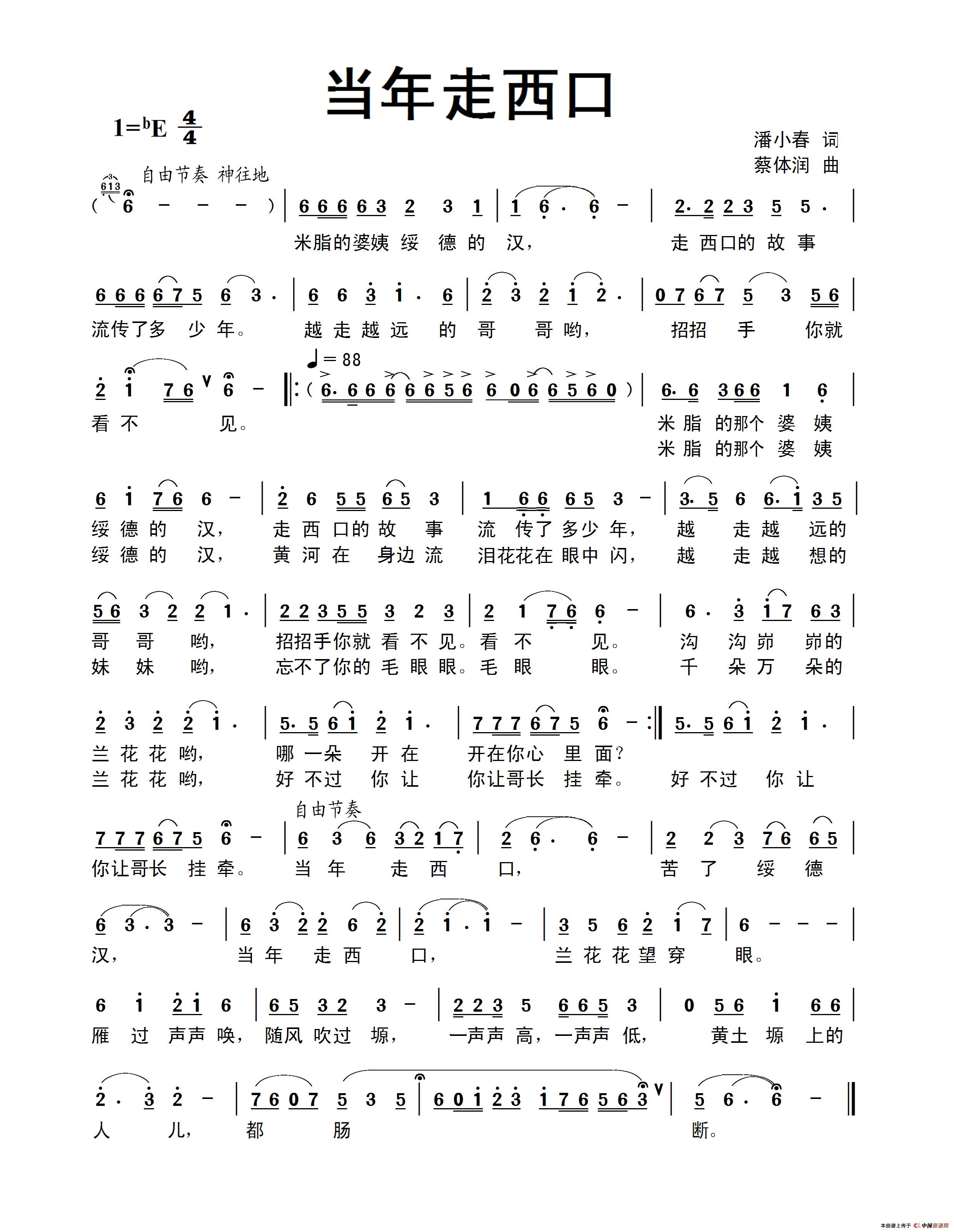 当年走西口(潘小春词 蔡体润曲)(1)_原文件名:当年走西口.jpg