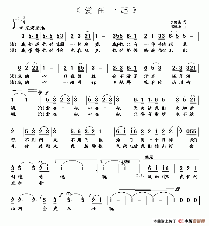 提示:在曲谱图片上单击右键,选择"图片另存为..."即可将曲谱保存到您的电脑中,打印时候可将图片插入到WORD中,调整合适大小打印即可。