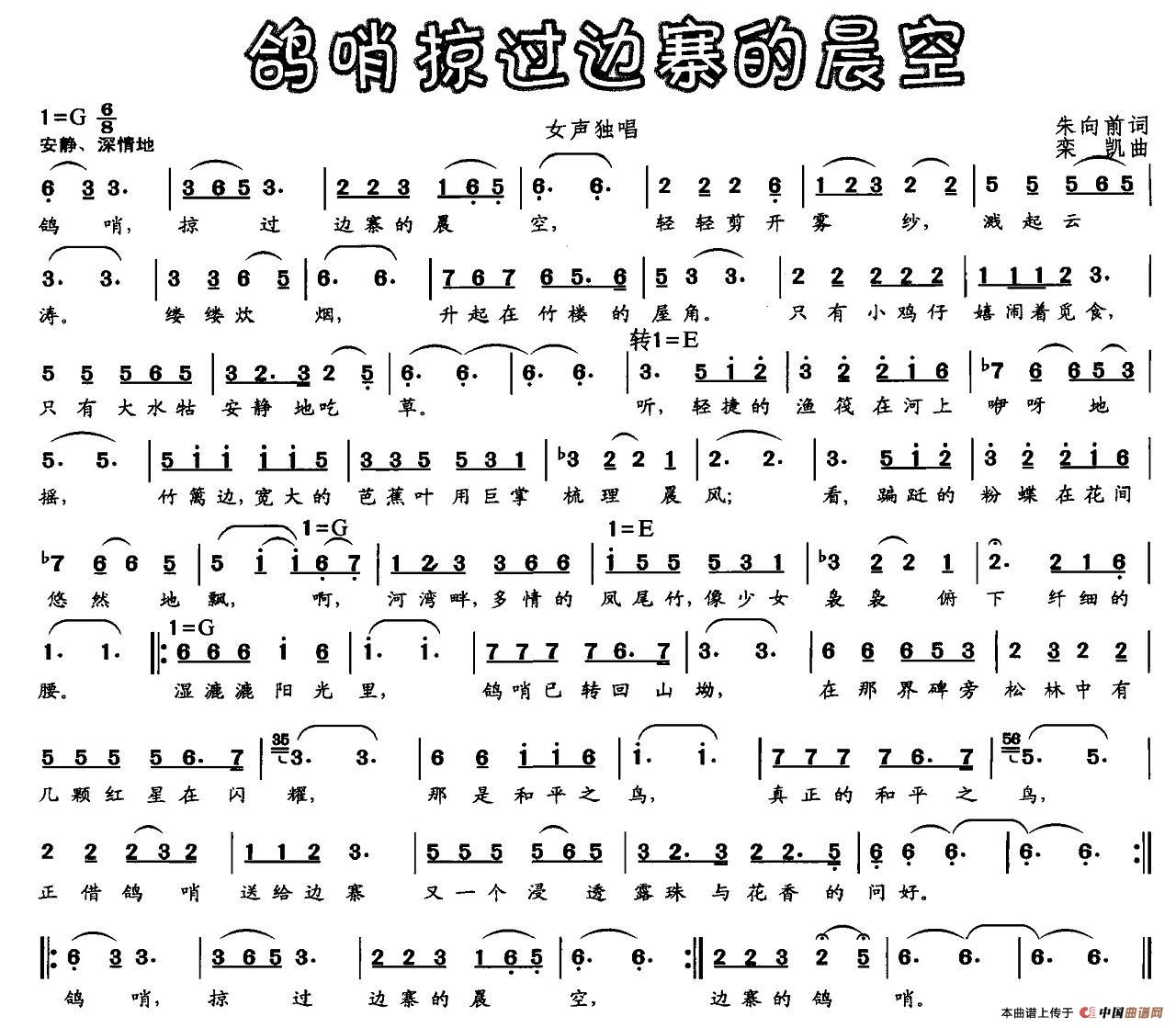 关于《鸽哨掠过边寨的晨空 》曲谱的评论